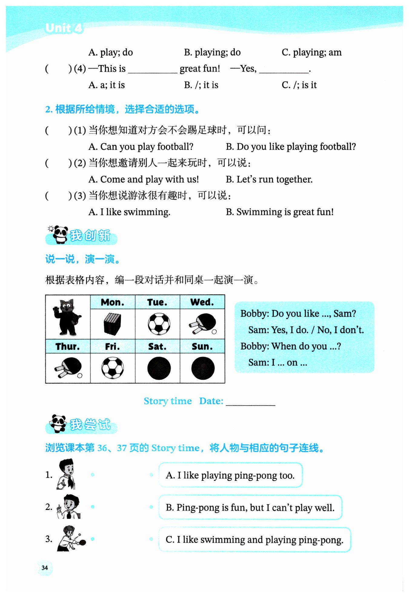 Sam: I play football on Tuesday and