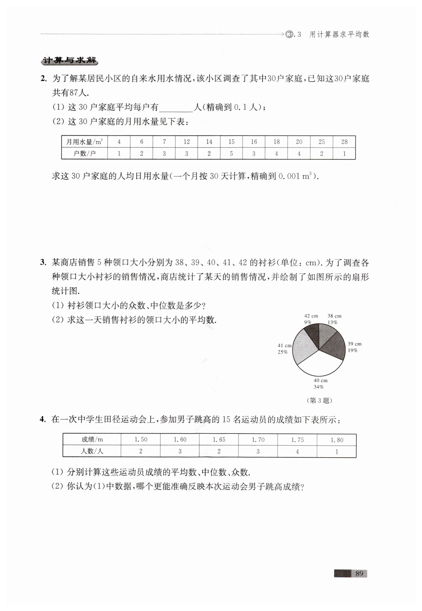 ?$(2 ) (42×9\%+38×13\% +39×19\%+40×34\% +41×25\% ) ÷1= 39.98(\mathrm {cm} )$?