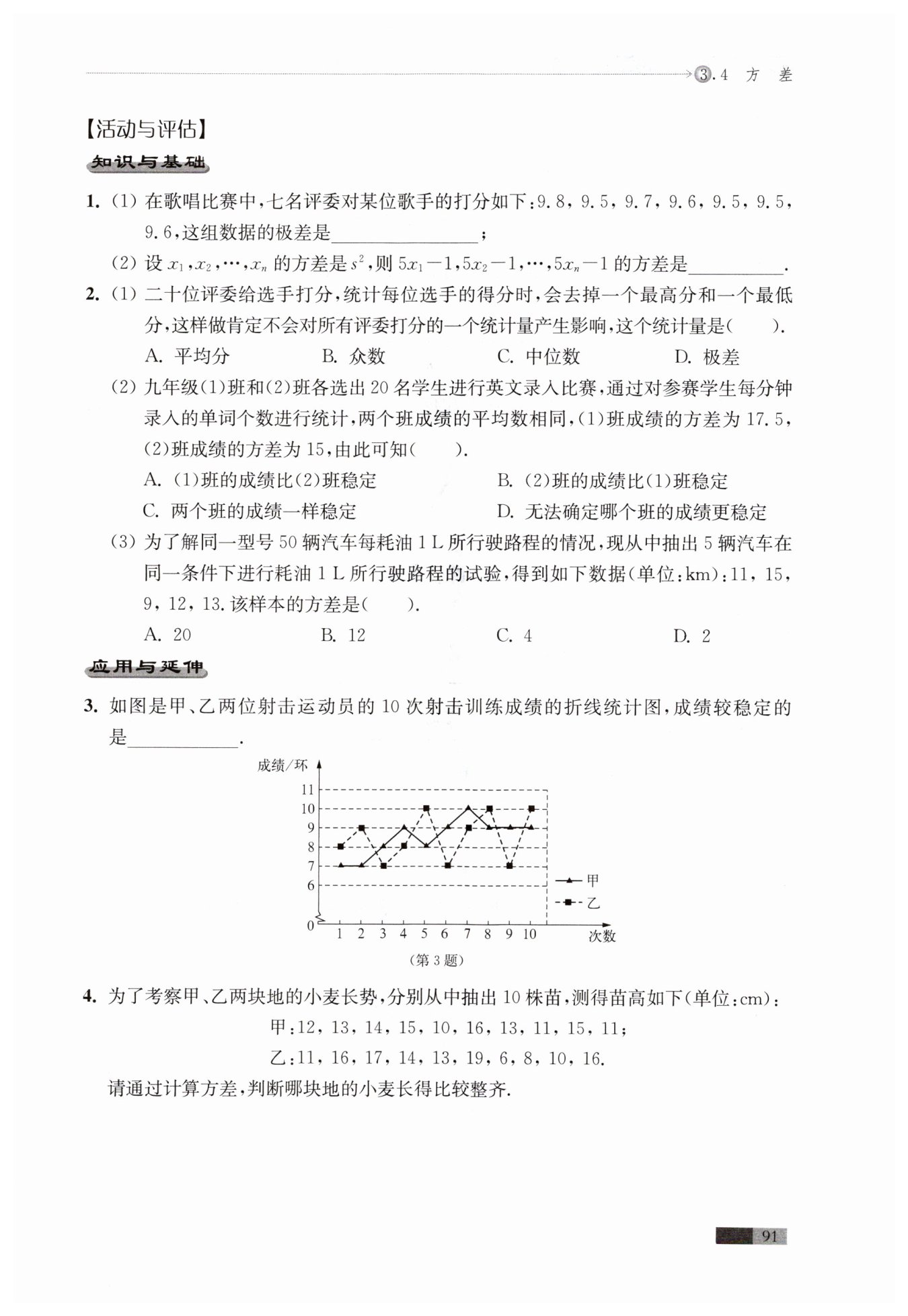 $ ∴甲地的小麥長(zhǎng)得比較整齊$