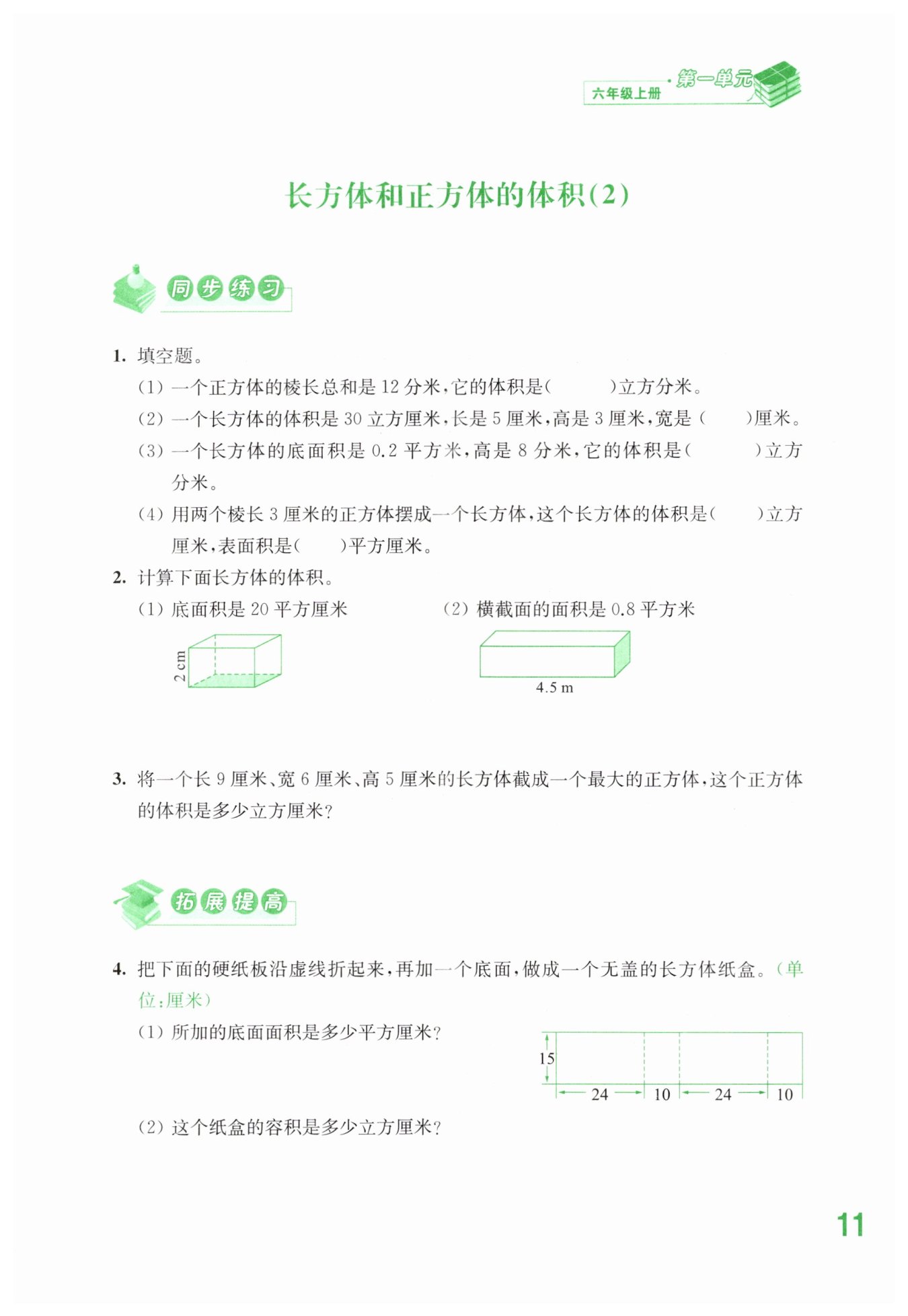 24×10×15=3600 (立方厘米) 答:這個紙盒的容積是3600立方厘米。