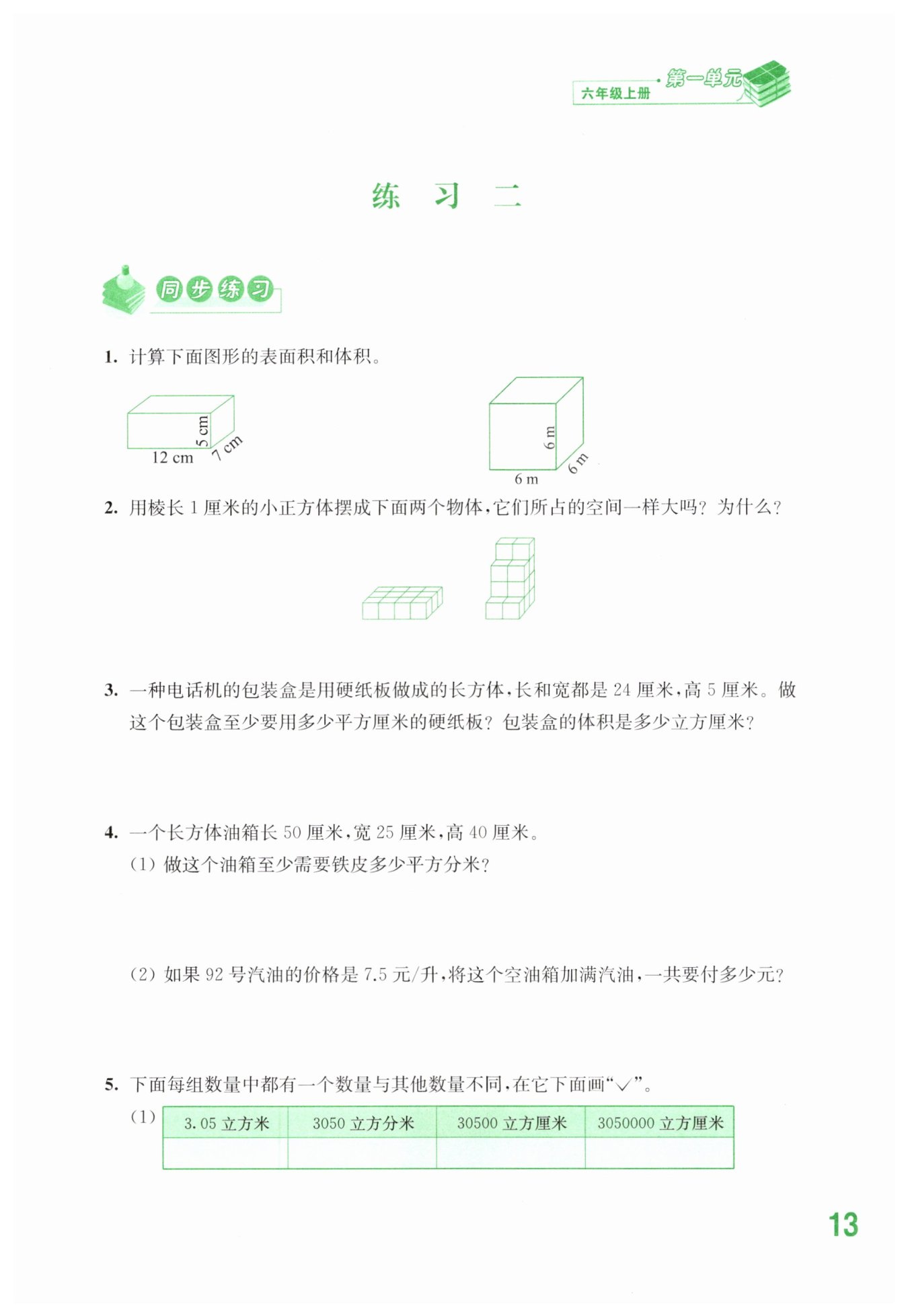 答:不一樣大。因為左邊是由12個小正方體組成,體積為12立方厘米,