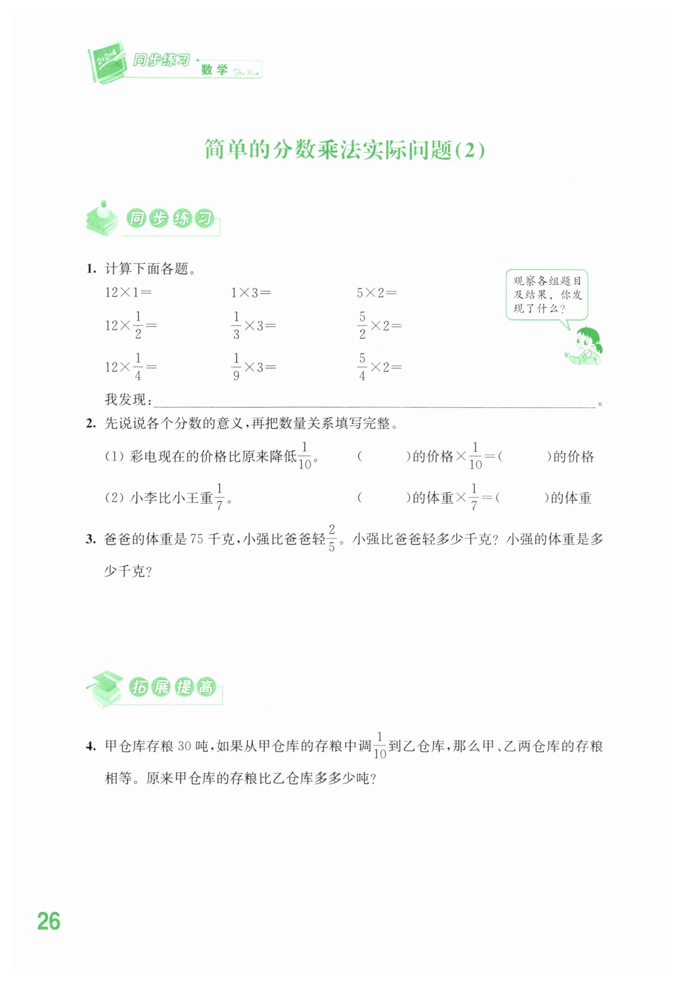 一個數(shù)(0除外)乘以一個小于1的分數(shù),積比這個數(shù)?。怀艘?,積等于這個數(shù)