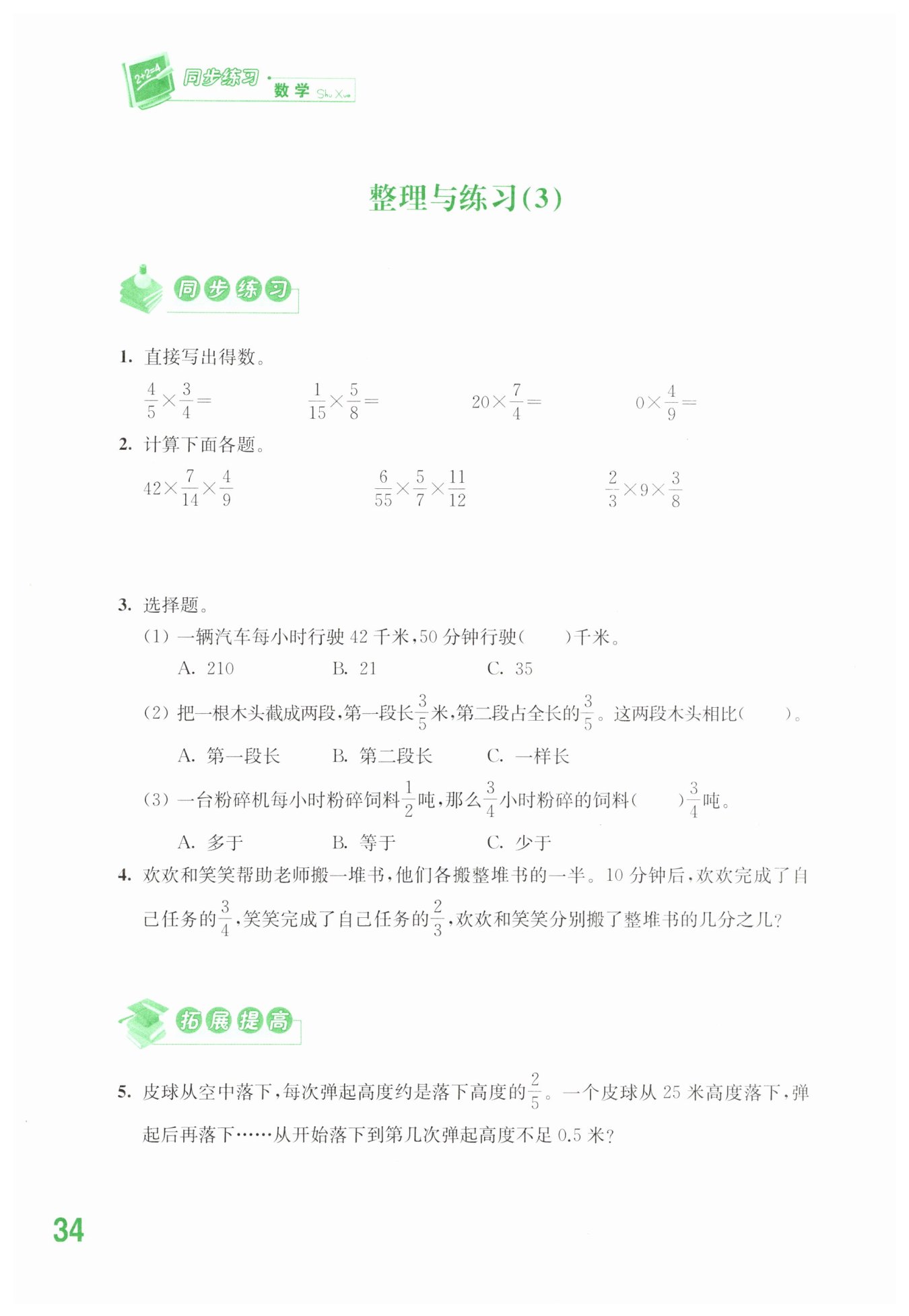 答:歡歡搬了整堆書的$\frac{3}{8},$笑笑搬了整堆書的$\frac{1}{3}。$