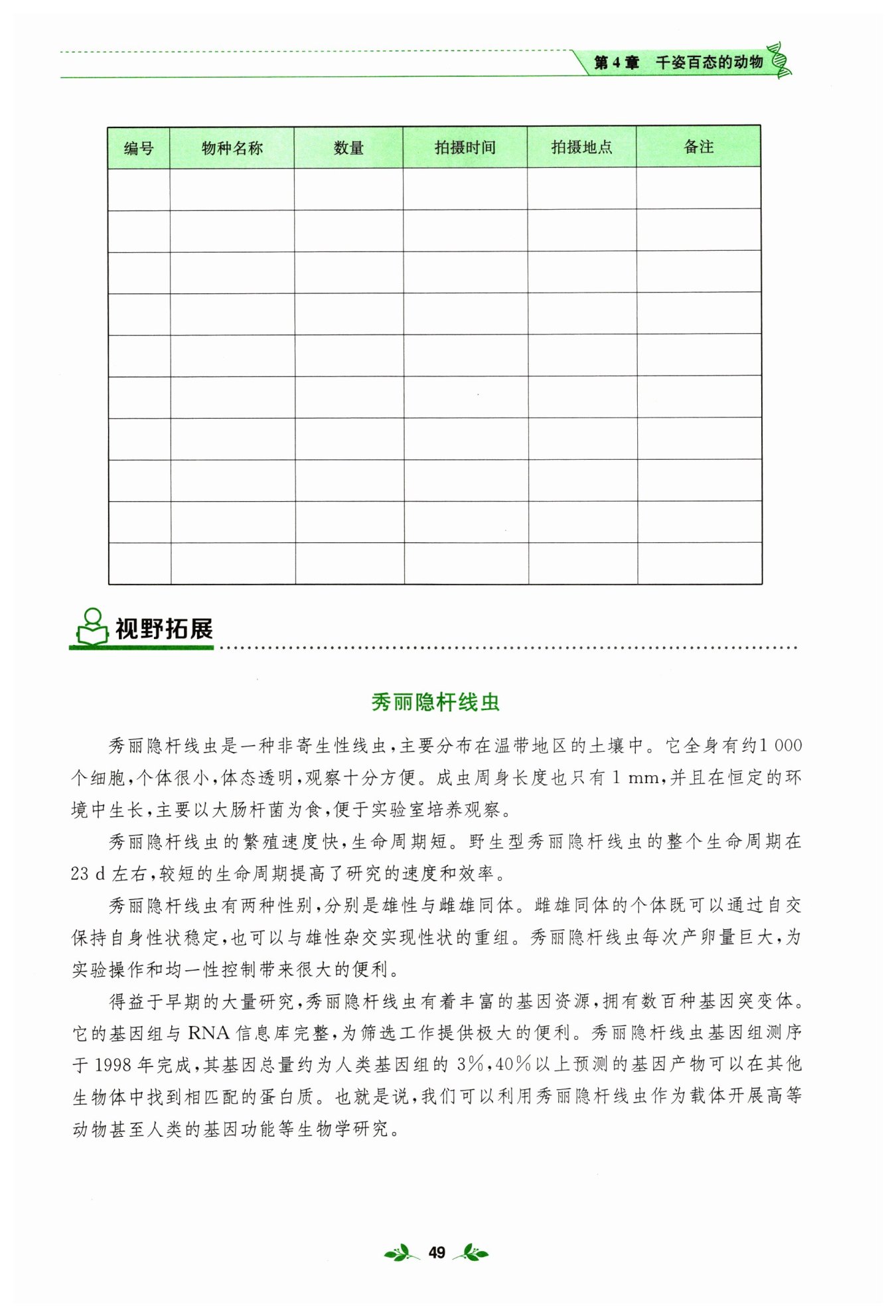 (同學們自行完成野外拍攝,根據實際情況進行記錄即可)