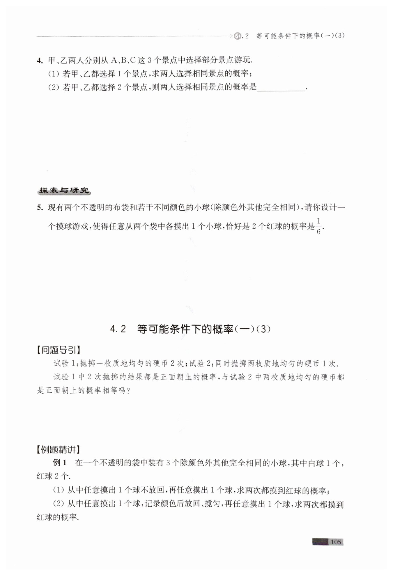 一共有?$9$?種等可能的結(jié)果,其中兩人選擇相同景點的占?$3$?種