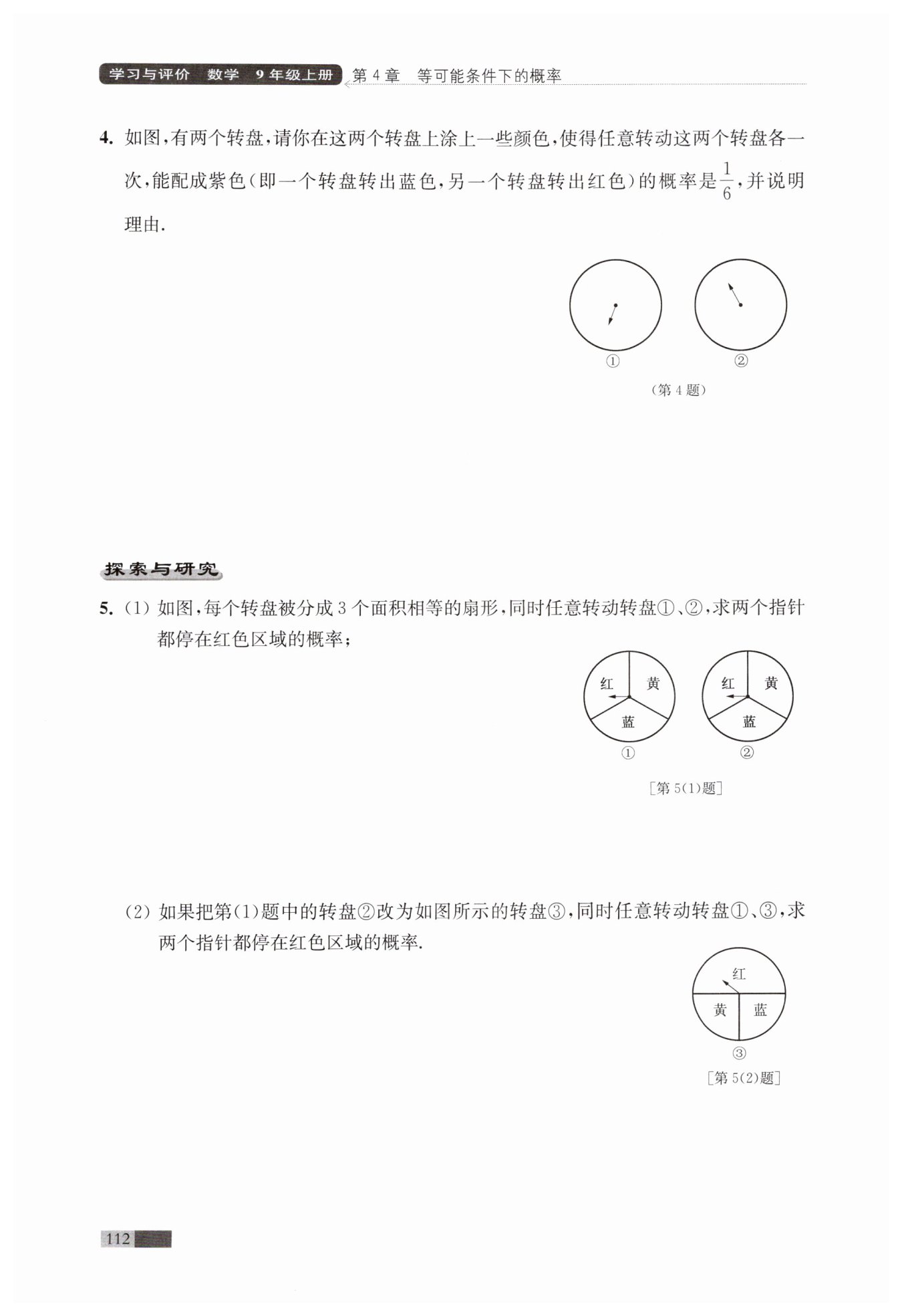 解:可以看成將轉盤均分成?$4$?份,黃色和藍色各占一份,紅色占?$2$?份