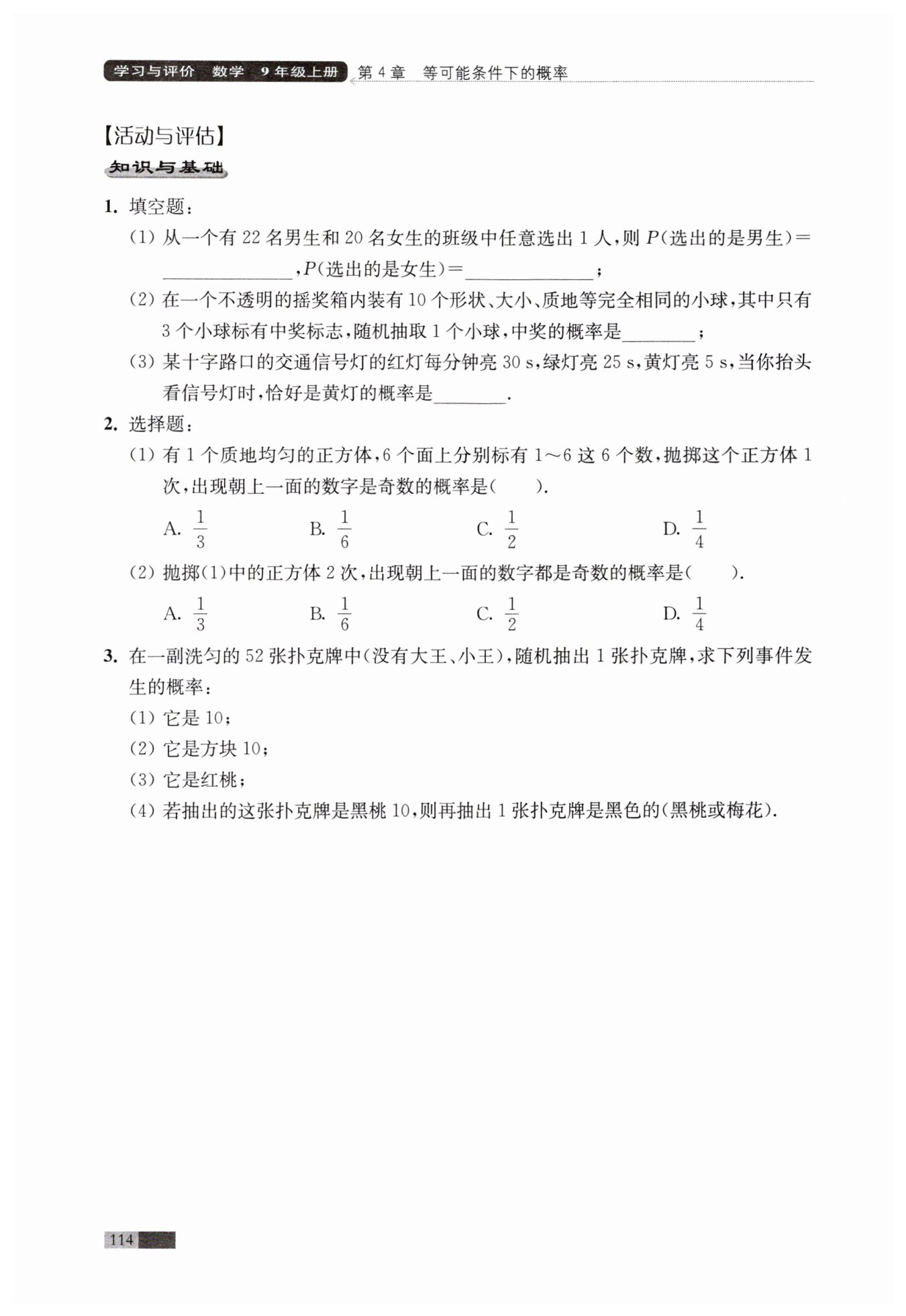 ?$ (3)$?其中抽到?$''$?紅桃?$''$?占?$13$?種,∴?$ P=\frac {13}{52}=\frac 14$?