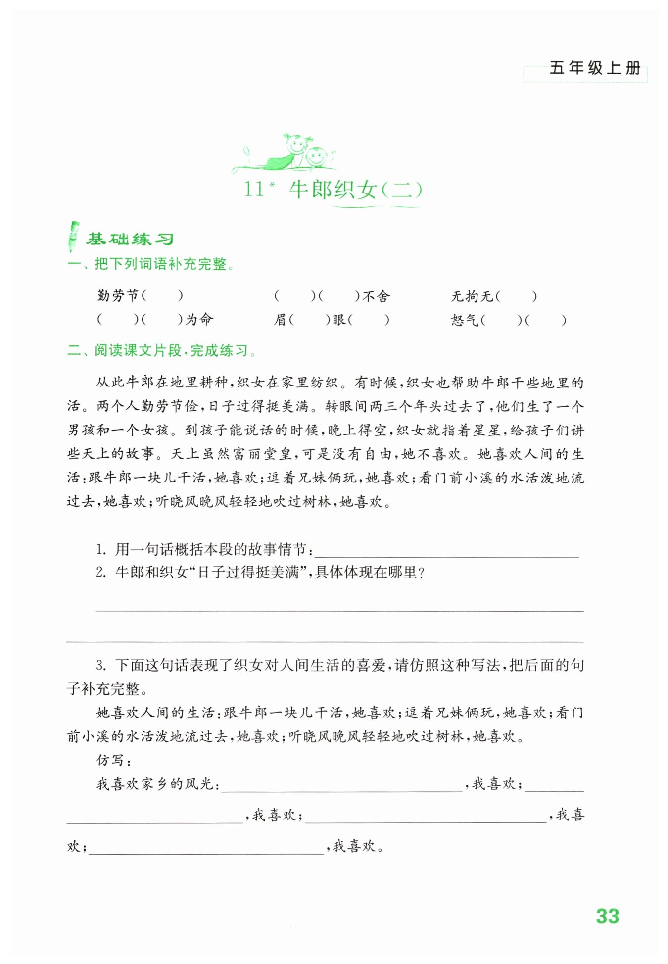 牛郎和織女過著幸福美滿的生活。