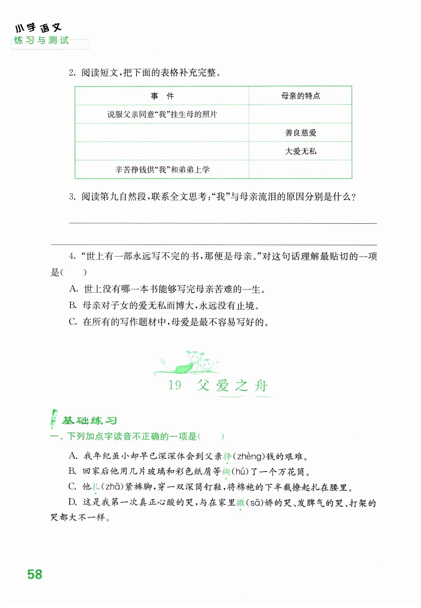 “我”為母親的關(guān)愛與付出而感動,為母親的衰老而傷感,為自己以前的不懂