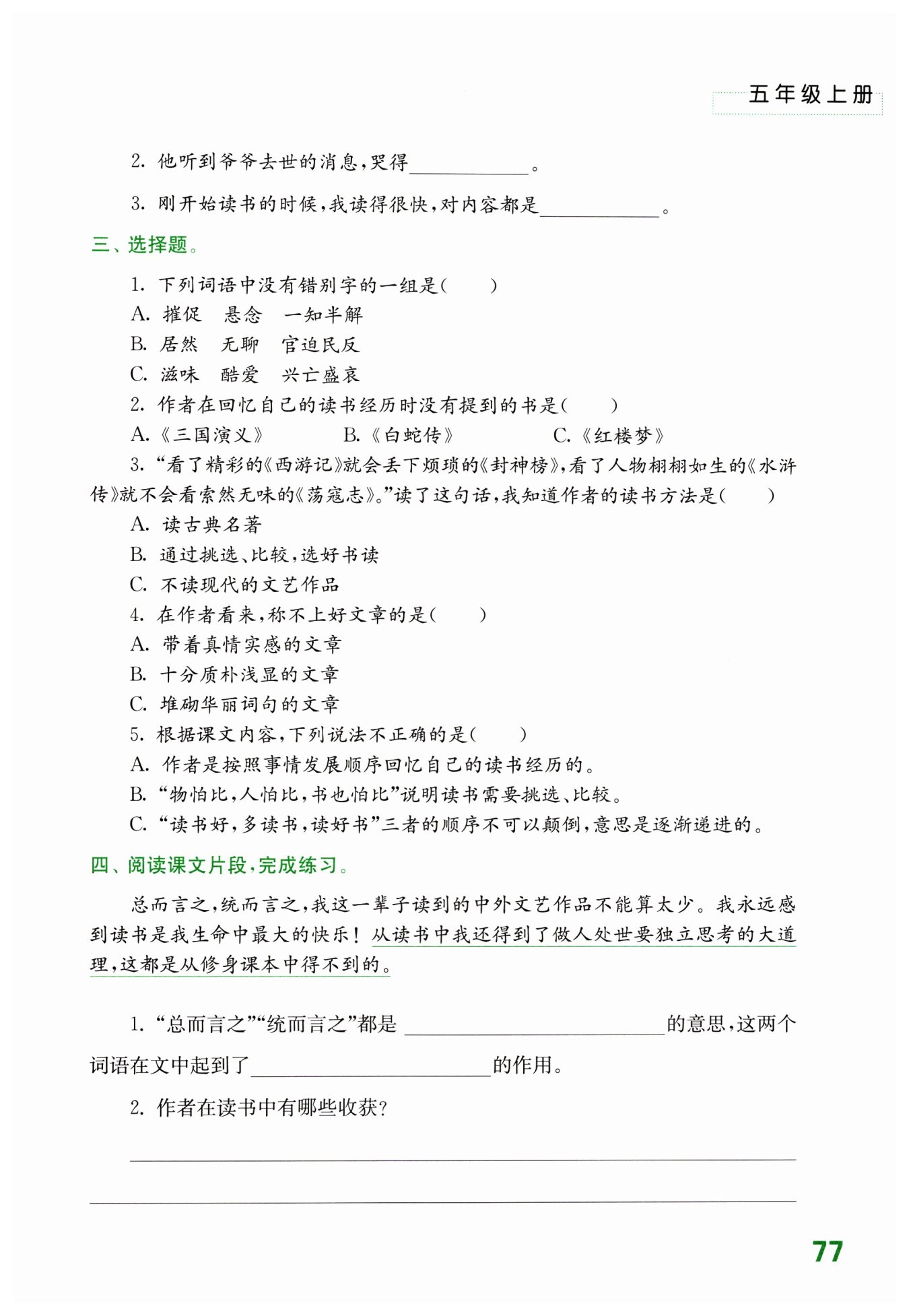 享受到了讀書的快樂:得到了做人處世要“獨立思考”的大道理。