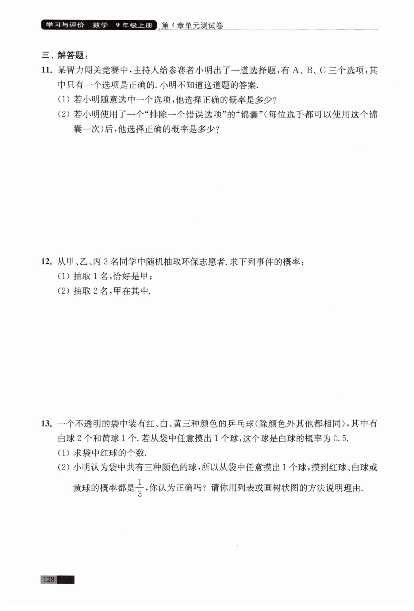 ?$ $?一共有?$4$?種等可能的結(jié)果,其中摸到白球占?$2$?種,黃球和紅球各占一種