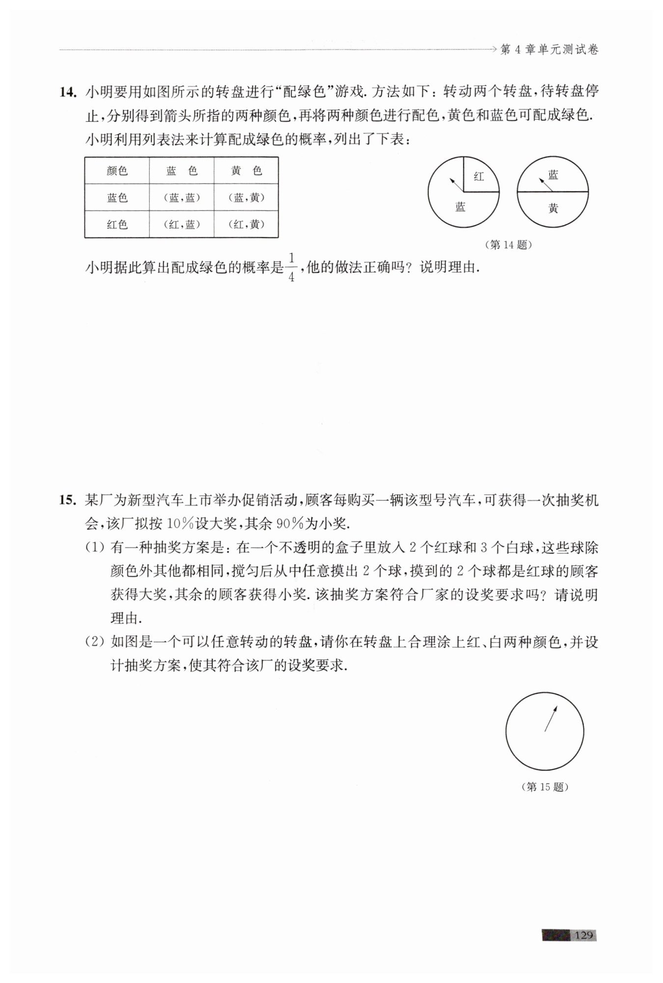 解:不正確,因為第一個轉(zhuǎn)盤轉(zhuǎn)到藍色和紅色的可能性不一致,第一個轉(zhuǎn)盤可以看成