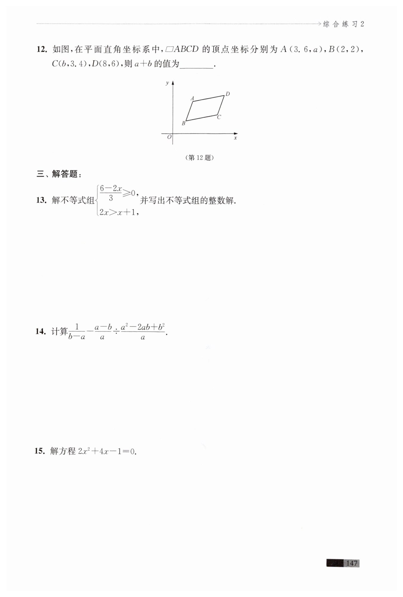 解:?$ $?解不等式?$①$?得?$x≤ 3$?