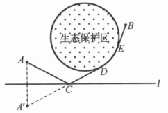 解:?$(2)①$?在?$C$?處建燃?xì)庹?,鋪設(shè)管道的最短路線是?$ACDB$?