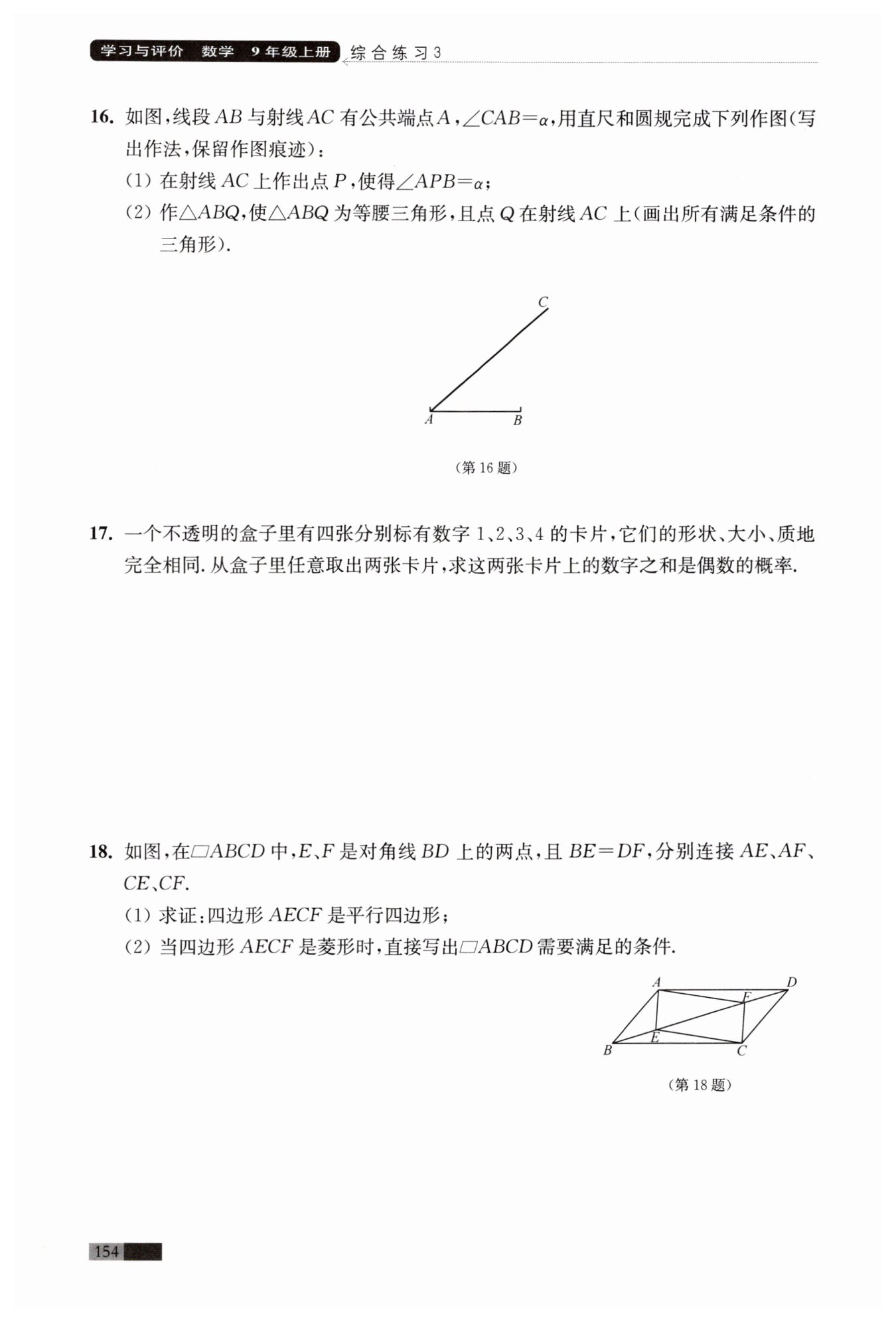 ?$AB$?長(zhǎng)為半徑作弧交射線?$AC$?于點(diǎn)?$ Q_{1}、$??$Q_{2}$?