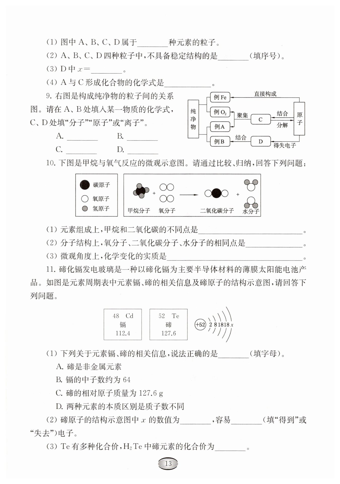 甲烷由碳、氫元素組成; 二氧化碳由碳、氧元素組成