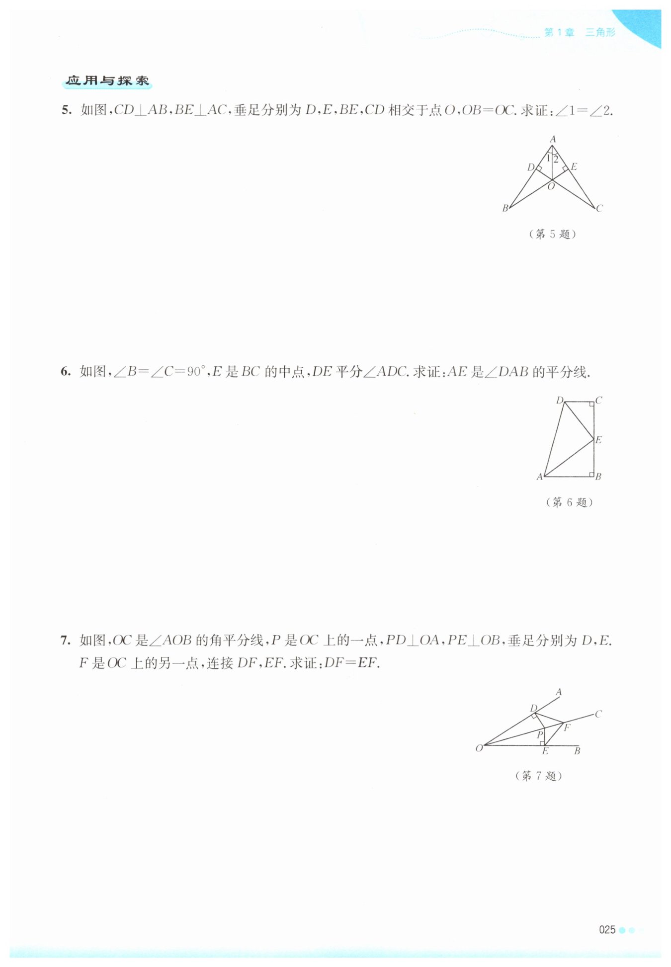 證明:∵?$OC$?是?$∠AOB$?的平分線,?$PD⊥OA$?,?$PE⊥OB$?