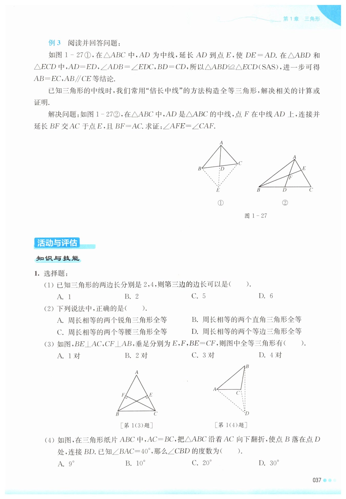 (1) 本題考察的是三角形三邊關系“兩邊之和大于第三邊,兩邊之差小于第三邊”。