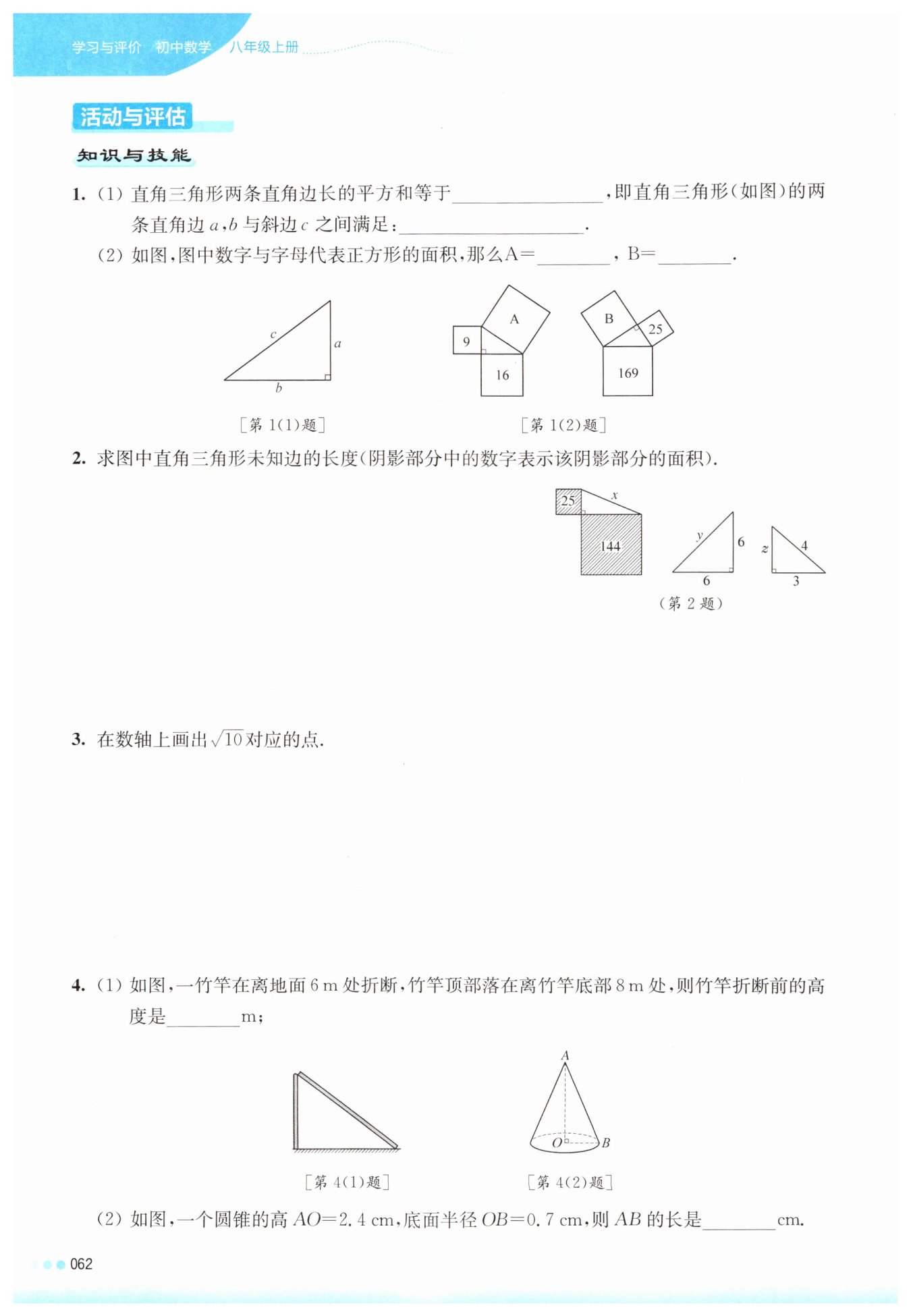 4.(1)解:設折斷部分長度為$x$m,由勾股定理得$x^{2}=6^{2}+8^{2}$,$x^{2}=36 + 64=100$,$x = 10$(負值舍去),則竹竿折斷前高度為$6+10=16$m。16