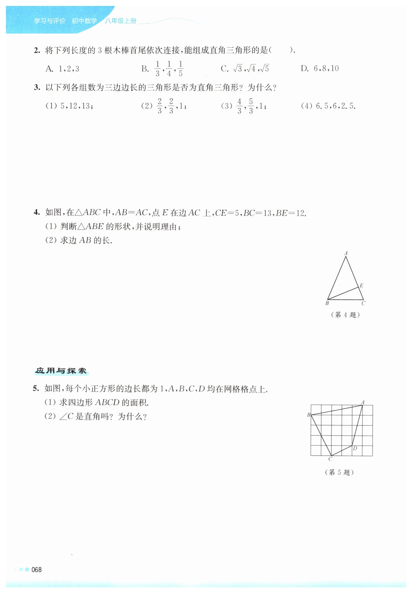 本題考察的是勾股定理的逆定理,即如果三角形三邊滿足勾股定理,即最長邊的平方等于其他兩邊的平方和,那么這個三角形就是直角三角形。