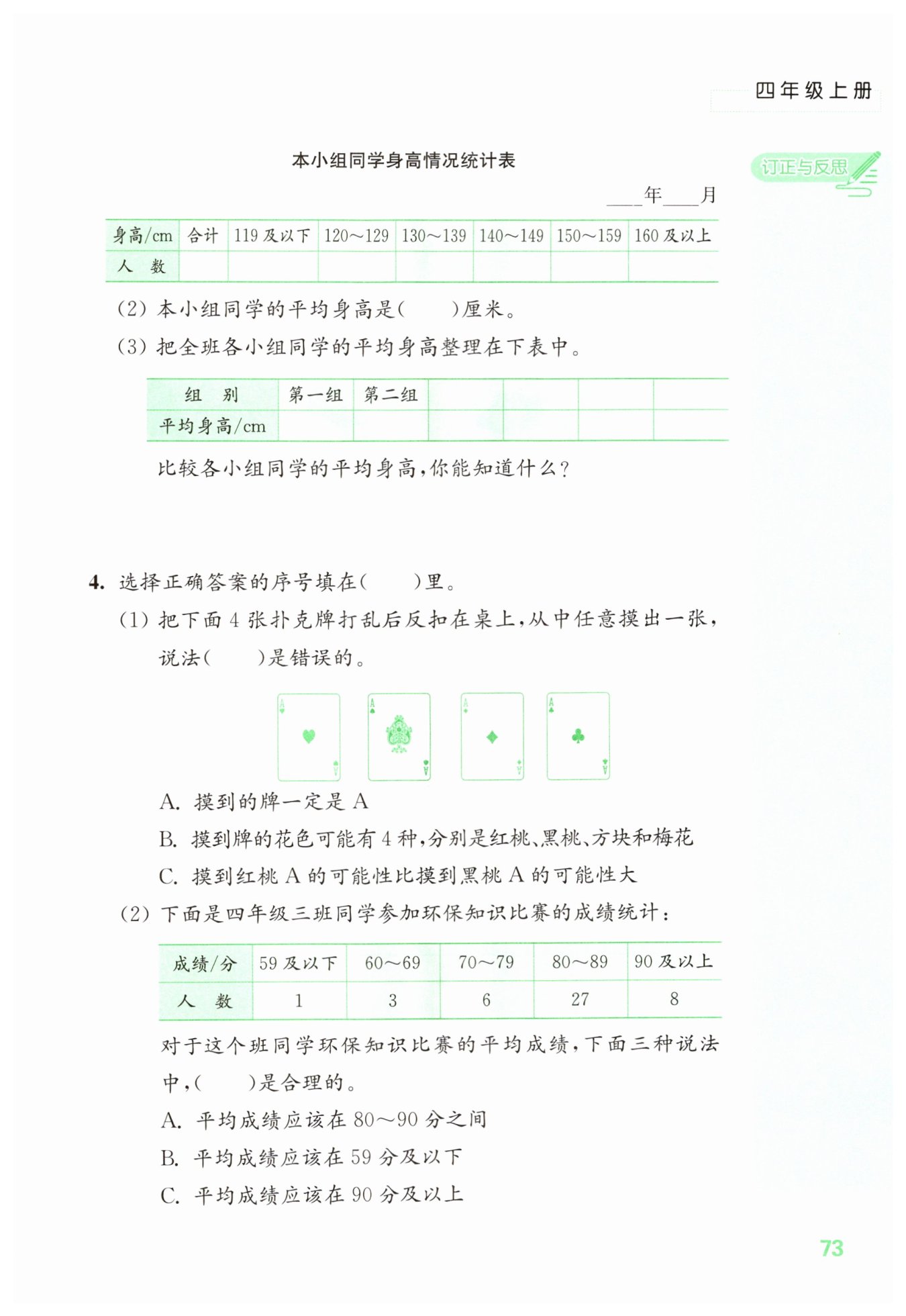 答:各小組的平均身高都在130cm 以上,第四小組同學(xué)的平均身高最高。