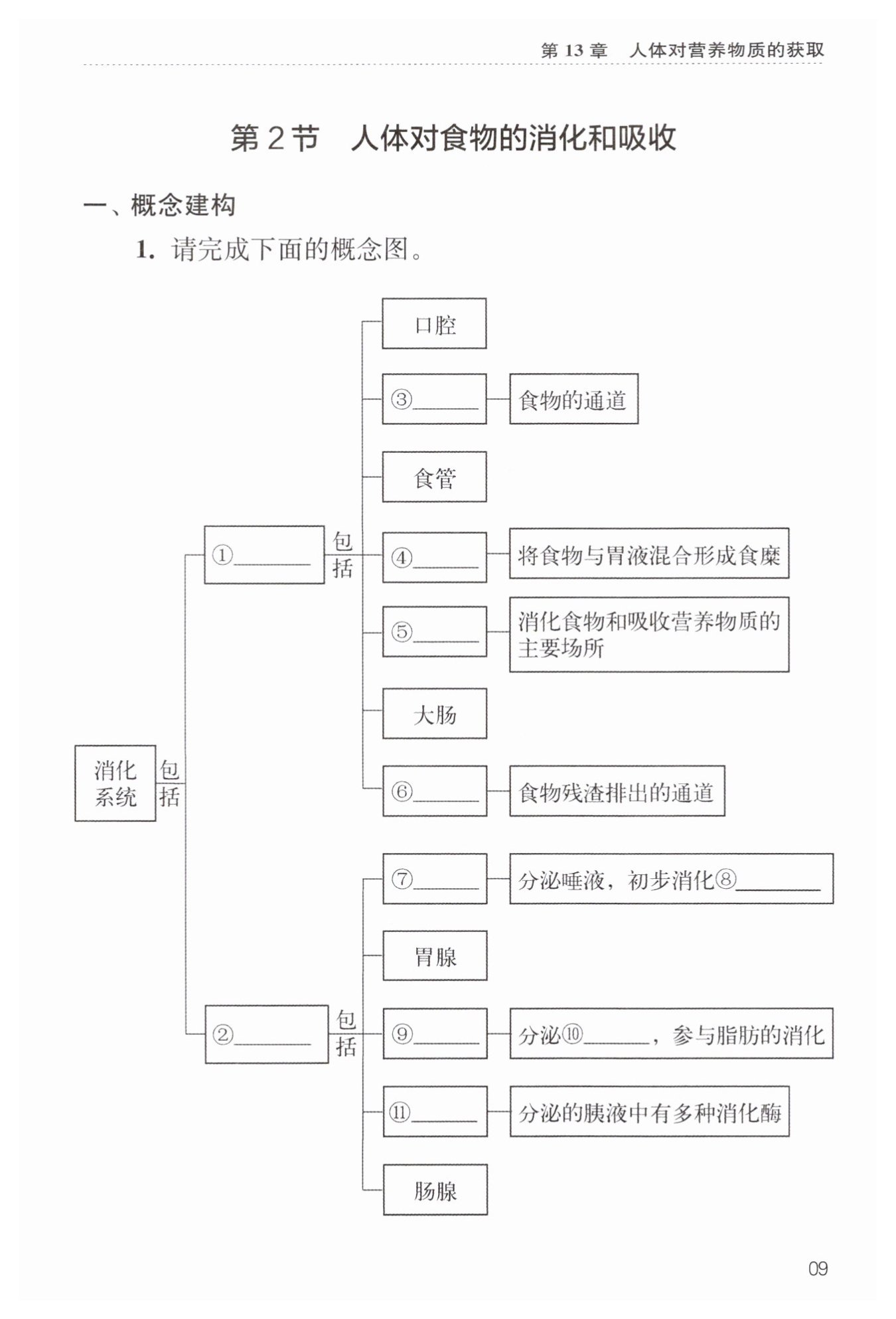 ①消化道;②消化腺;③咽;④胃;⑤小腸;⑥肛門;⑦唾液腺;⑧淀粉;⑨肝臟;⑩膽汁;?胰腺