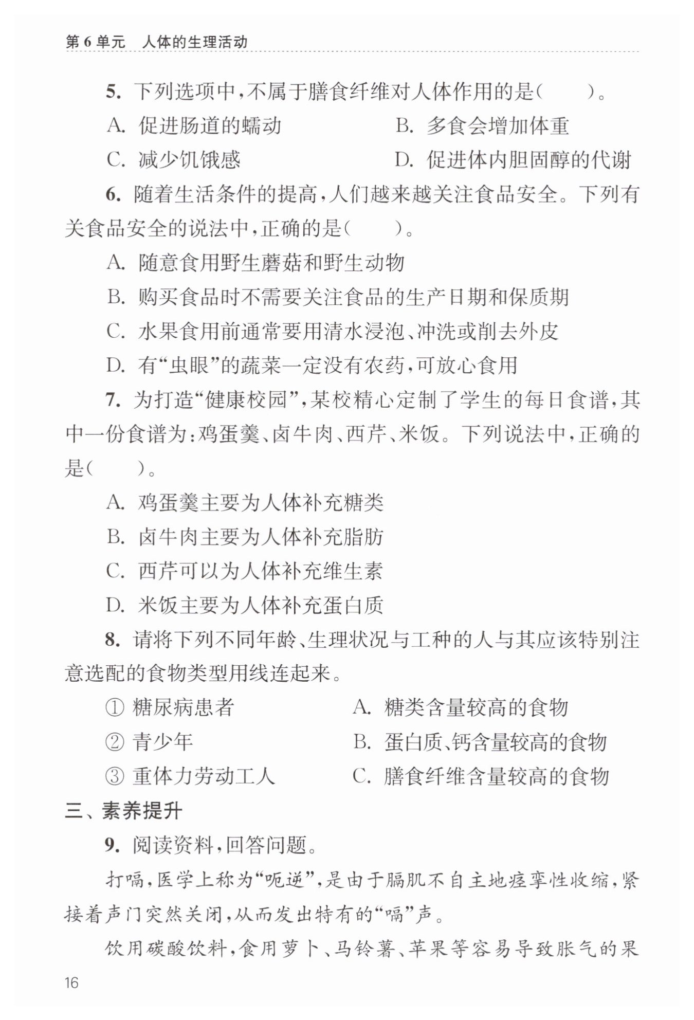 C. 減少饑餓感:由于膳食纖維吸水性強(qiáng),可以在胃中占據(jù)較大空間,從而增加飽腹感,減少饑餓感。故C選項(xiàng)描述的是膳食纖維的作用,不符合題意。