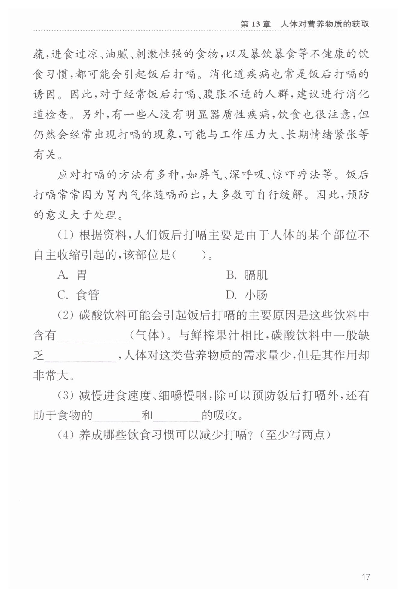不暴飲暴食、不過量食用易脹氣食物、少喝或不喝碳酸飲料等(合理即可)