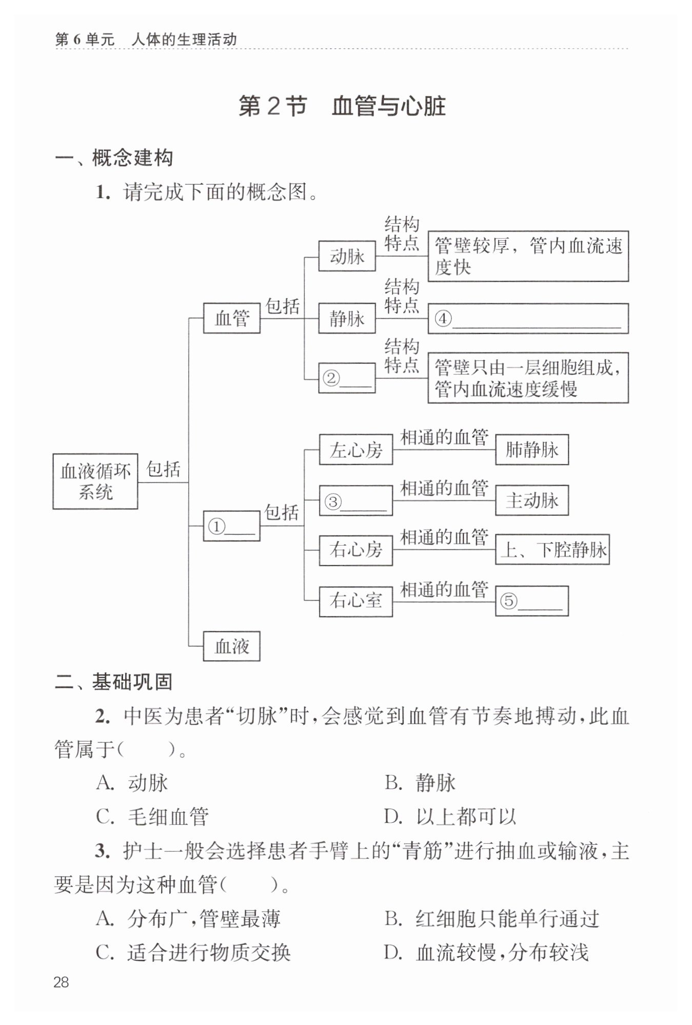 【解析】:本題考察的是對于人體血管類型的識別及其特點(diǎn)的理解。人體內(nèi)的血管有動脈血管、靜脈血管、毛細(xì)血管三種類型。動脈血管管壁厚,彈性最大,管腔較小,血流速度快,其功能為將血液從心臟輸送到全身各處去;靜脈血管管壁較薄,彈性較小,管腔大,血流速度慢,其功能為將血液從全身各處輸送到心臟去;毛細(xì)血管管壁最薄,只有一層上皮細(xì)胞構(gòu)成,管腔最小,只允許紅細(xì)胞呈單行通過,血流速度極慢,數(shù)量最多,其功能為物質(zhì)交換的場所。所以,護(hù)士在輸液時,一般會選擇手腕外側(cè)的“青筋”進(jìn)行穿刺,這里的“青筋”實際上是靜脈血管,這些靜脈血管分布在體表,容易看到且易于穿刺,同時血流速度較慢,有利于輸液或抽血。根據(jù)題目中的描述,“青筋”進(jìn)行抽血或輸液,這主要是利用了靜脈血管的特點(diǎn)。動脈血管深藏于身體內(nèi),不易看到和穿刺;毛細(xì)血管雖然分布廣泛,但管腔極小,不適合進(jìn)行輸液或抽血。對比選項,A選項描述的是毛細(xì)血管的特點(diǎn),B選項同樣描述的是毛細(xì)血管,C選項描述的是毛細(xì)血管的功能,而D選項“血流較慢,分布較淺”恰好符合靜脈血管的特點(diǎn)。