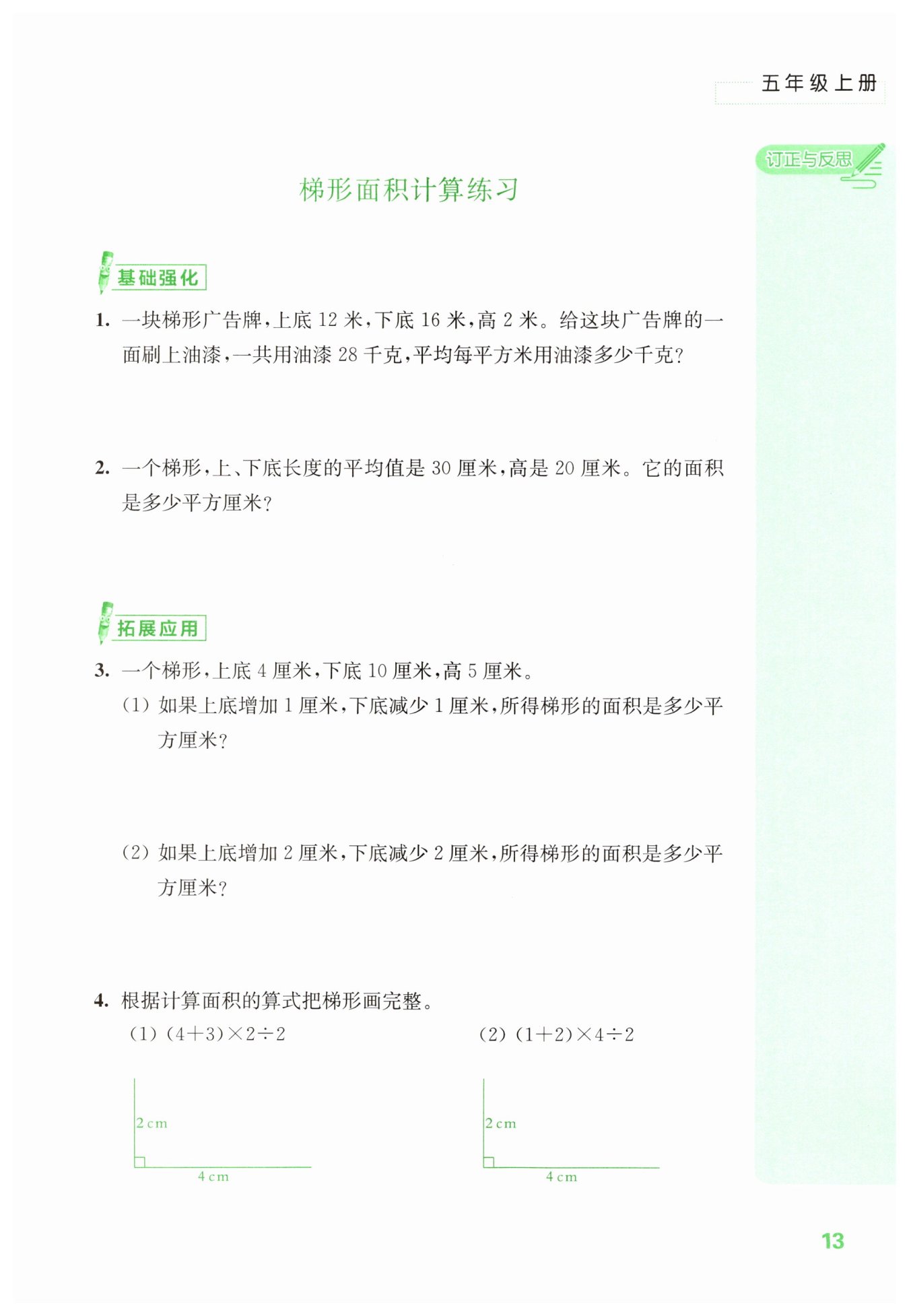 答:所得梯形的面積是?35?平方厘米。