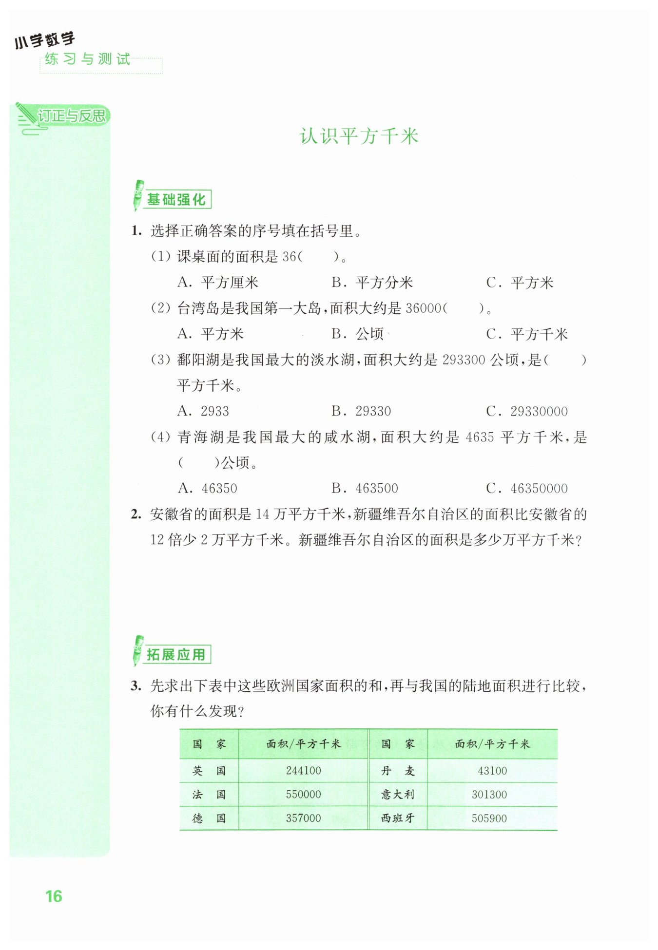 答:我發(fā)現(xiàn)我國的國土面積大于這些歐洲國家的面積之和。