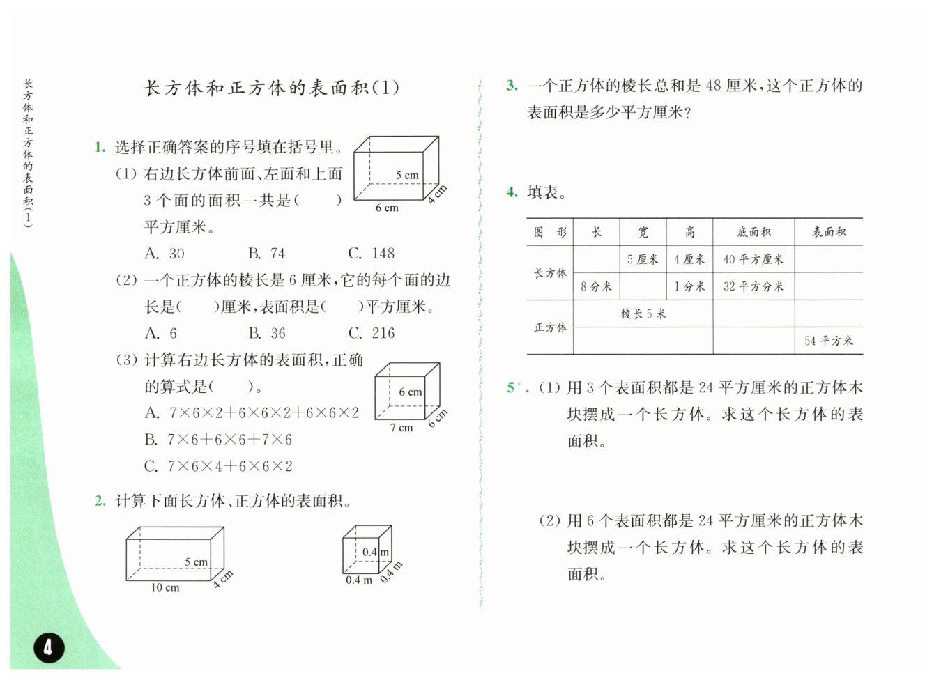 ?$①6$?個(gè)正方體排成一排:?$4×(36-10)=104(\mathrm {cm}2)$?