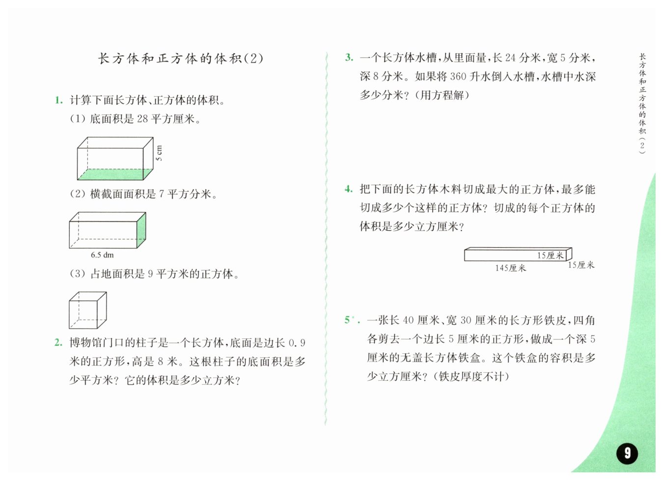 ?$(40-2×5)×(30-2×5)×5=3000 ($?立方厘米?$)$?