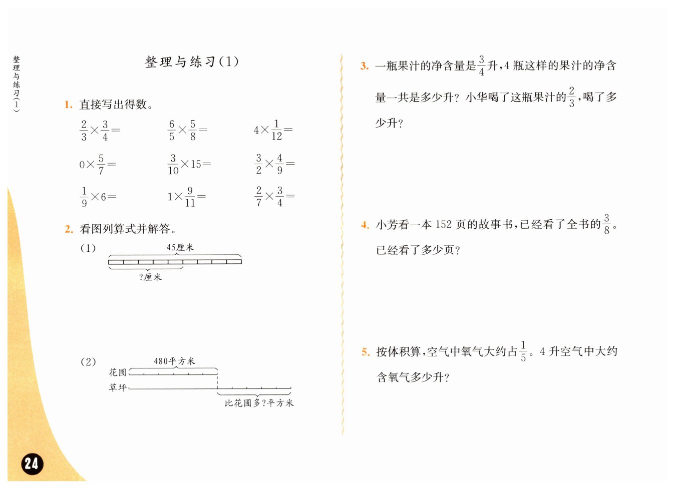 ?$ 4×\frac {1}{5}=\frac {4}{5}($?升?$)。$?
