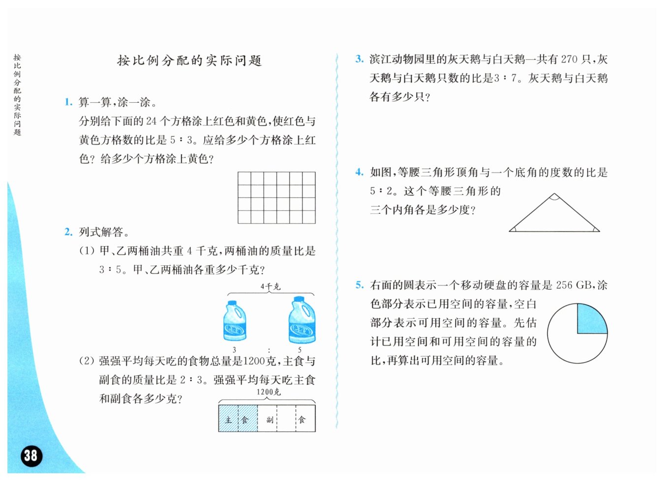 黃色:?$ 24×\frac 3{5+3}=9($?格?$)$?