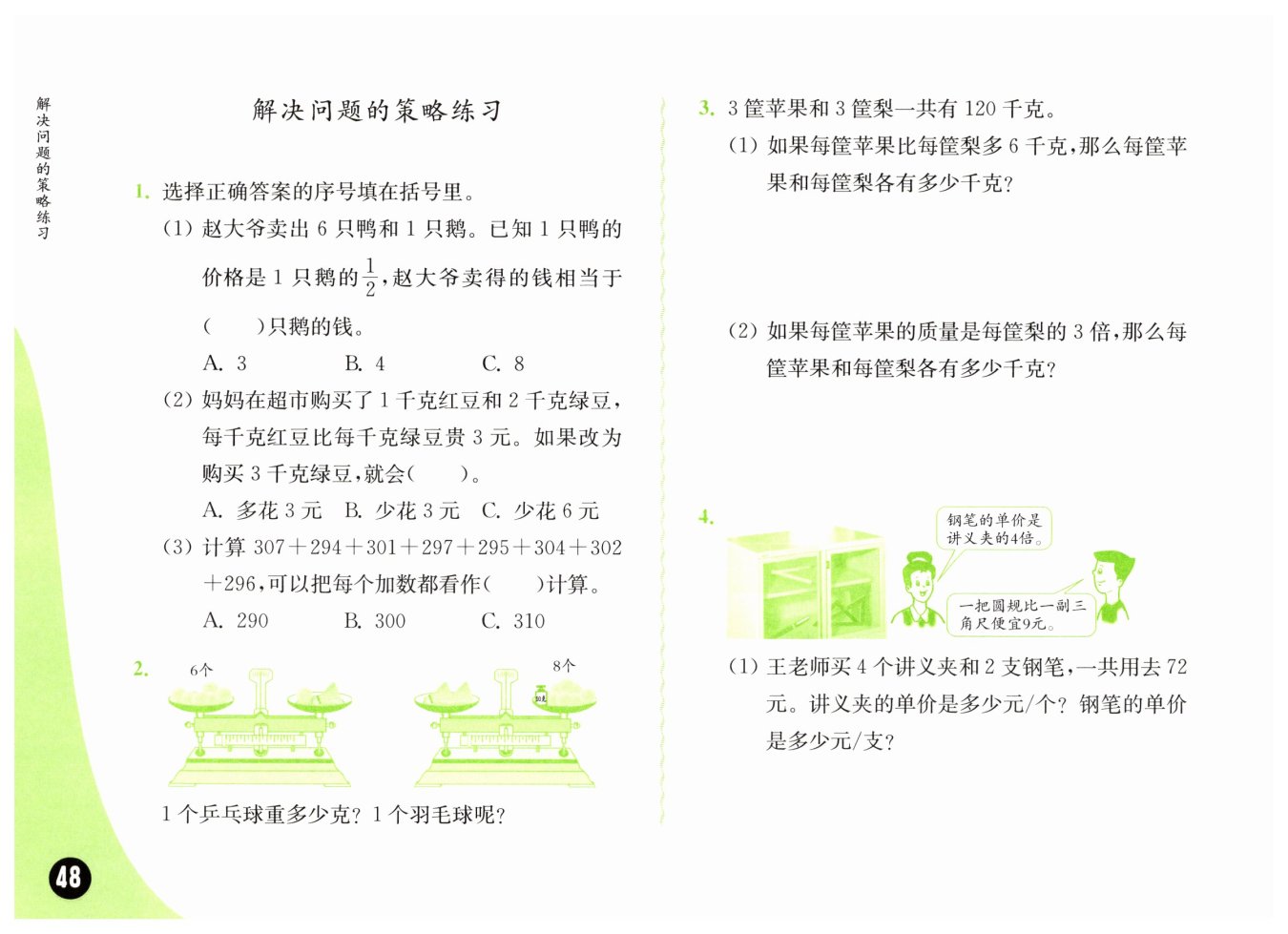 答:講義夾的單價(jià)是?$6$?元?$/$?個(gè)。鋼筆的單價(jià)是?$24$?元?$/$?支。