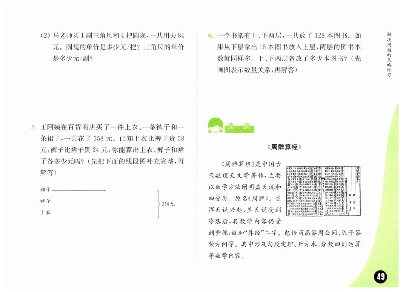 答:圓規(guī)的單價是?$15$?元?$/$?把。三角尺的單價是?$24$?元?$/$?副。