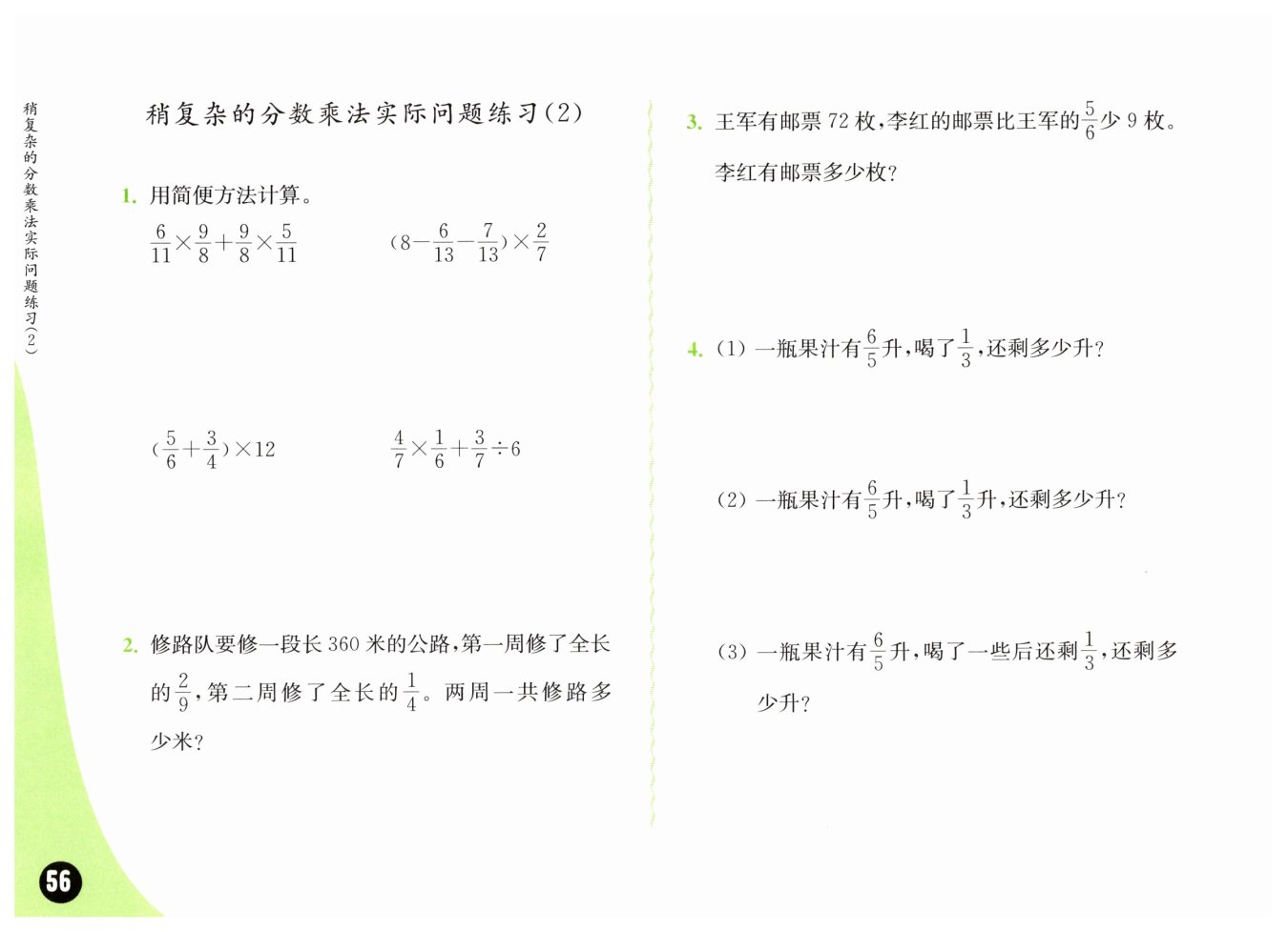 ?$ \frac 65×\frac 13=\frac 25($?升?$)$?