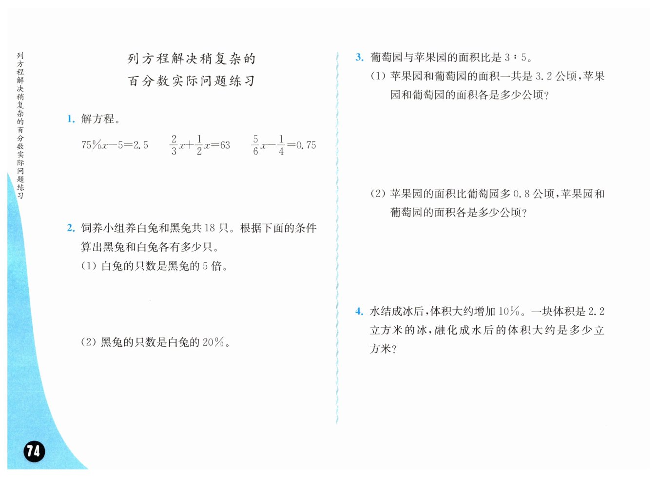 解:設(shè)蘋(píng)果園的面積是?$5x$?公頃,則葡萄園的面積是?$3x$?公頃。
