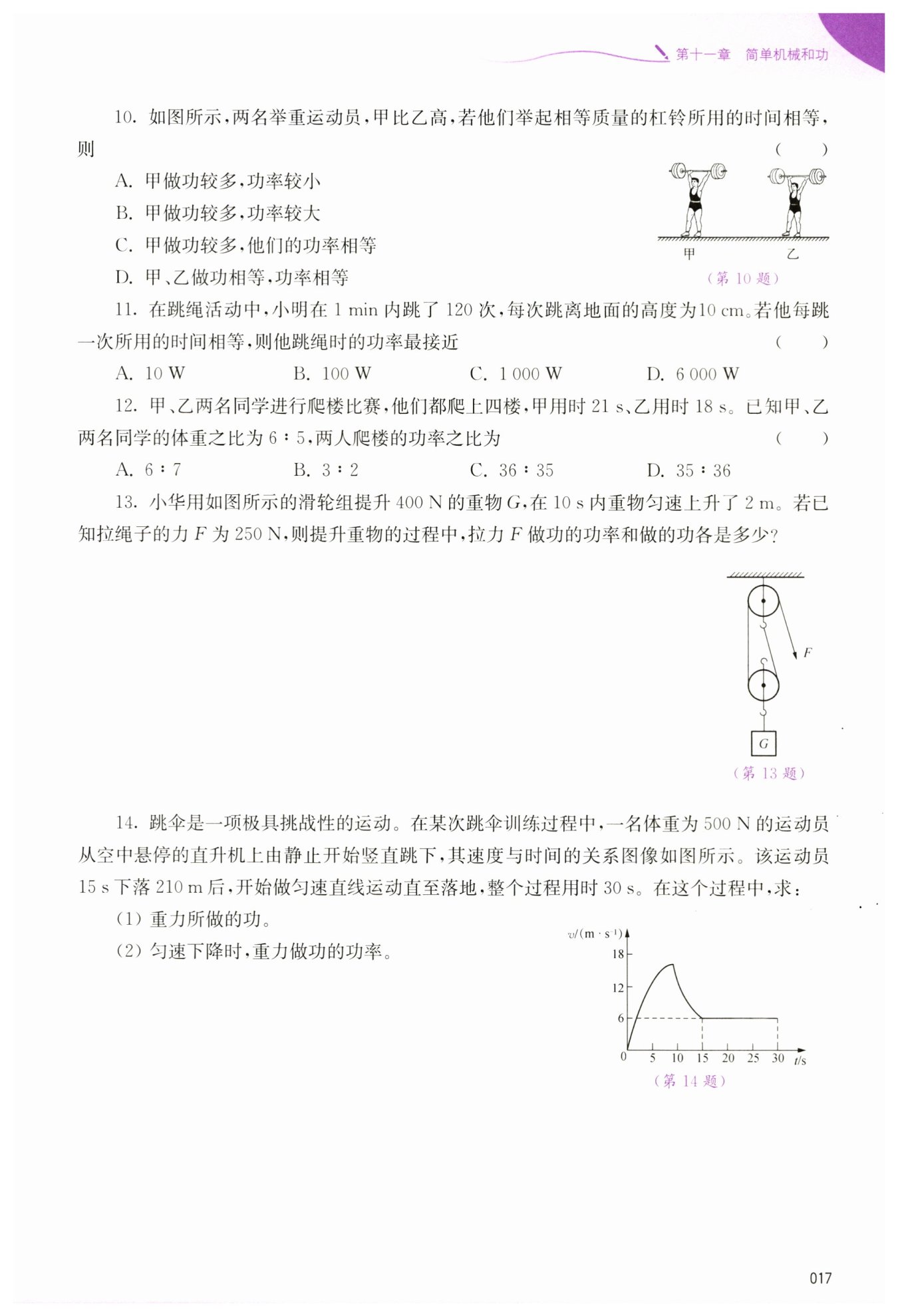 $ 重力做的功:?W=Gh=500\ \mathrm {N}×300\ \mathrm {m}=1.5×10^5\ \mathrm {J}?;$
