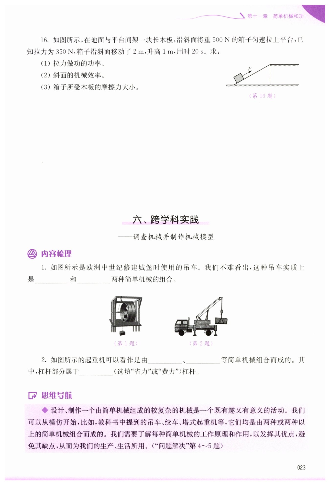 (1)拉力做功$W=Fs=350N\times2m=700J,$功率$P=\frac{W}{t}=\frac{700J}{20s}=35W;$(2)有用功$W_{有用}=Gh=500N\times1m=500J,$效率$\eta=\frac{W_{有用}}{W_{總}}\times100\%=\frac{500J}{700J}\times100\%\approx71.4\%;$(3)額外功$W_{額}=W_{總}-W_{有用}=700J-500J=200J,$摩擦力$f=\frac{W_{額}}{s}=\frac{200J}{2m}=100N$