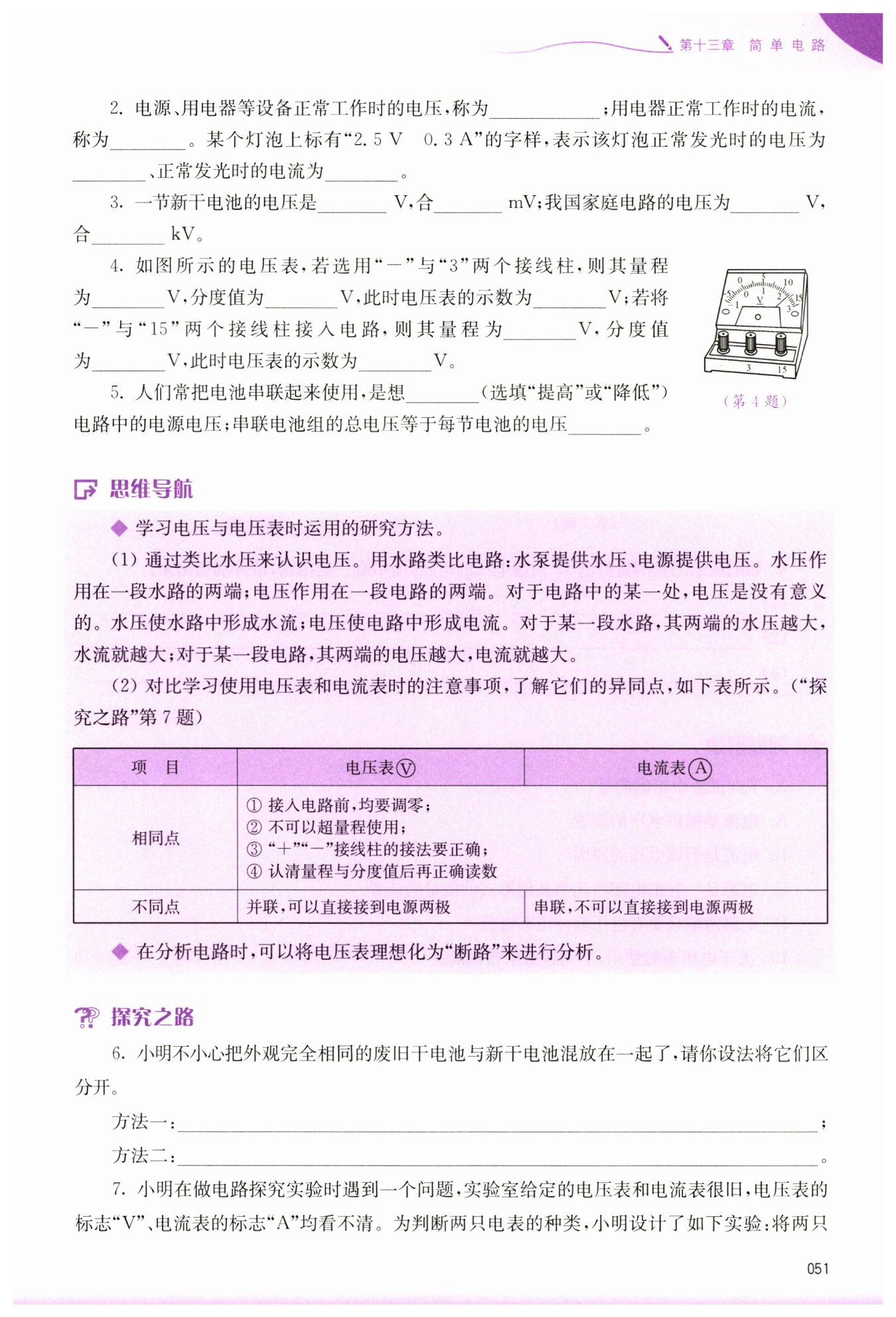 用電壓表直接測量電池兩端電壓,比1.5 V小一些的是舊電池