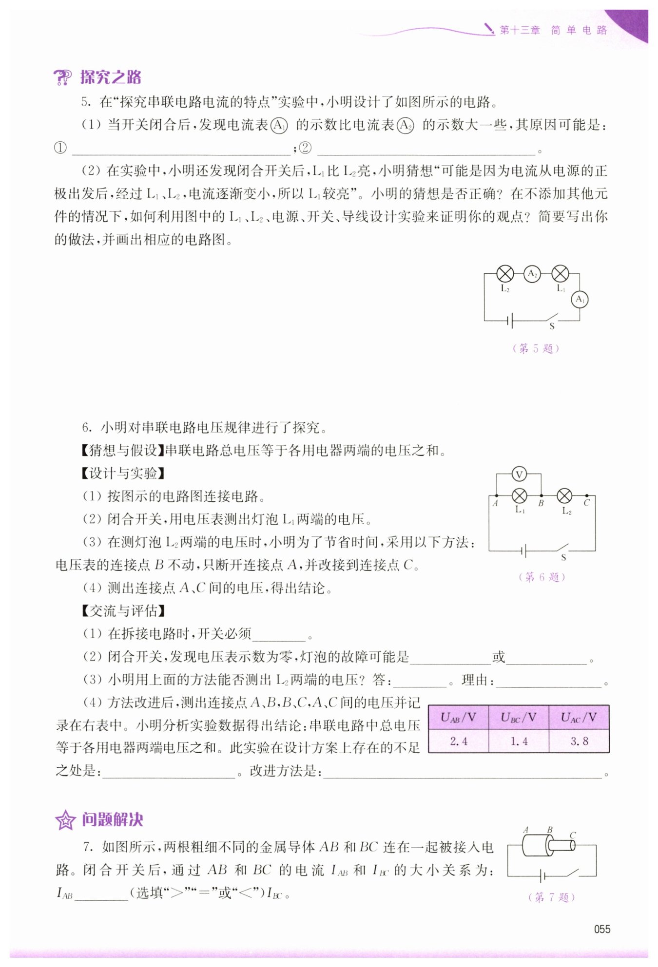 $小明的猜想是錯誤的。設(shè)計實驗:去掉原電路圖中的兩只電流表,$