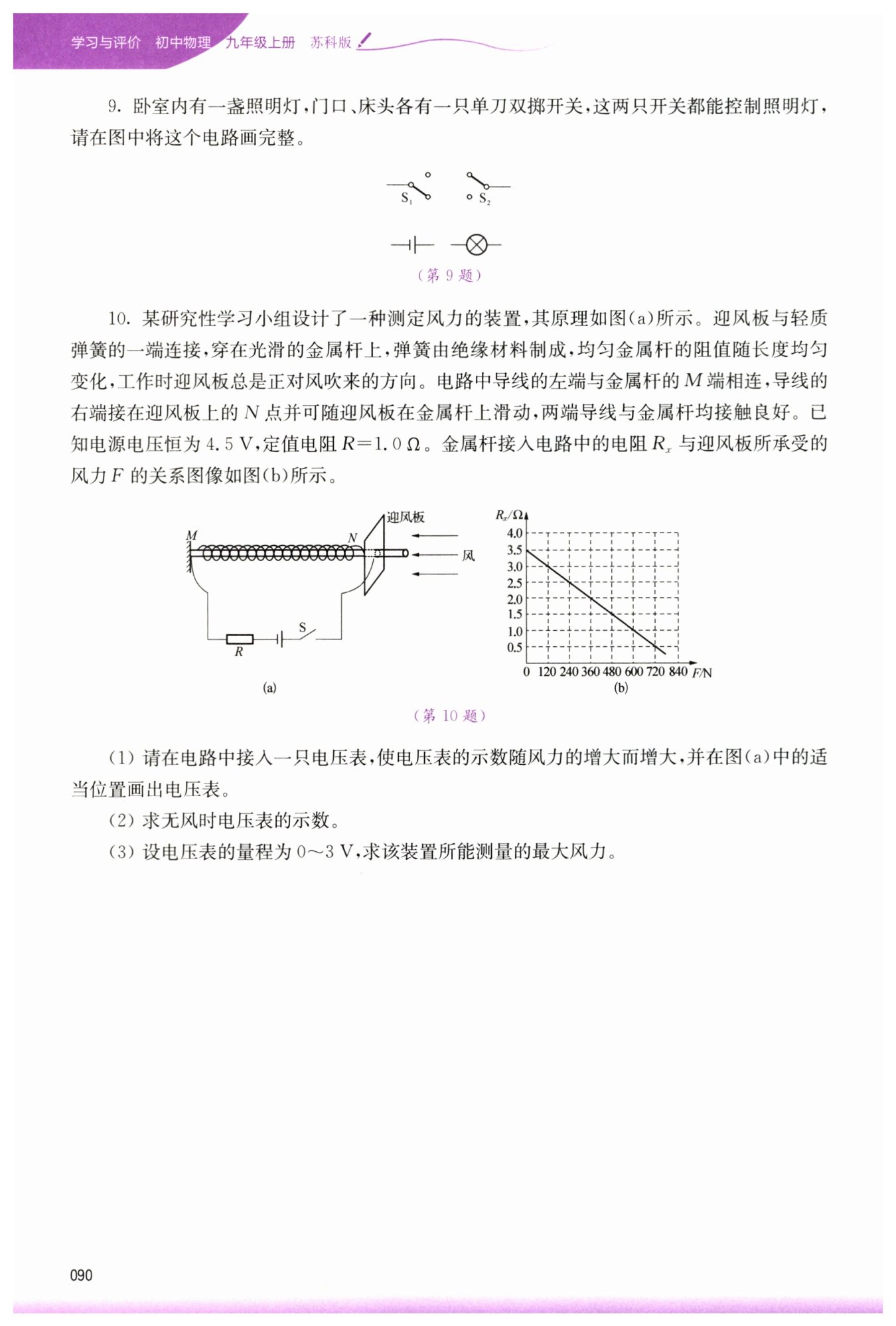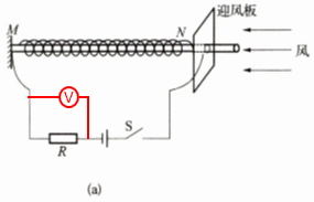 $解:?(2)?無風(fēng)時(shí),定值電阻?R ?與金屬桿串聯(lián),此時(shí)金屬桿接入電路中的電阻?R_{x}?為?3.5 \ \mathrm {Ω}?,$