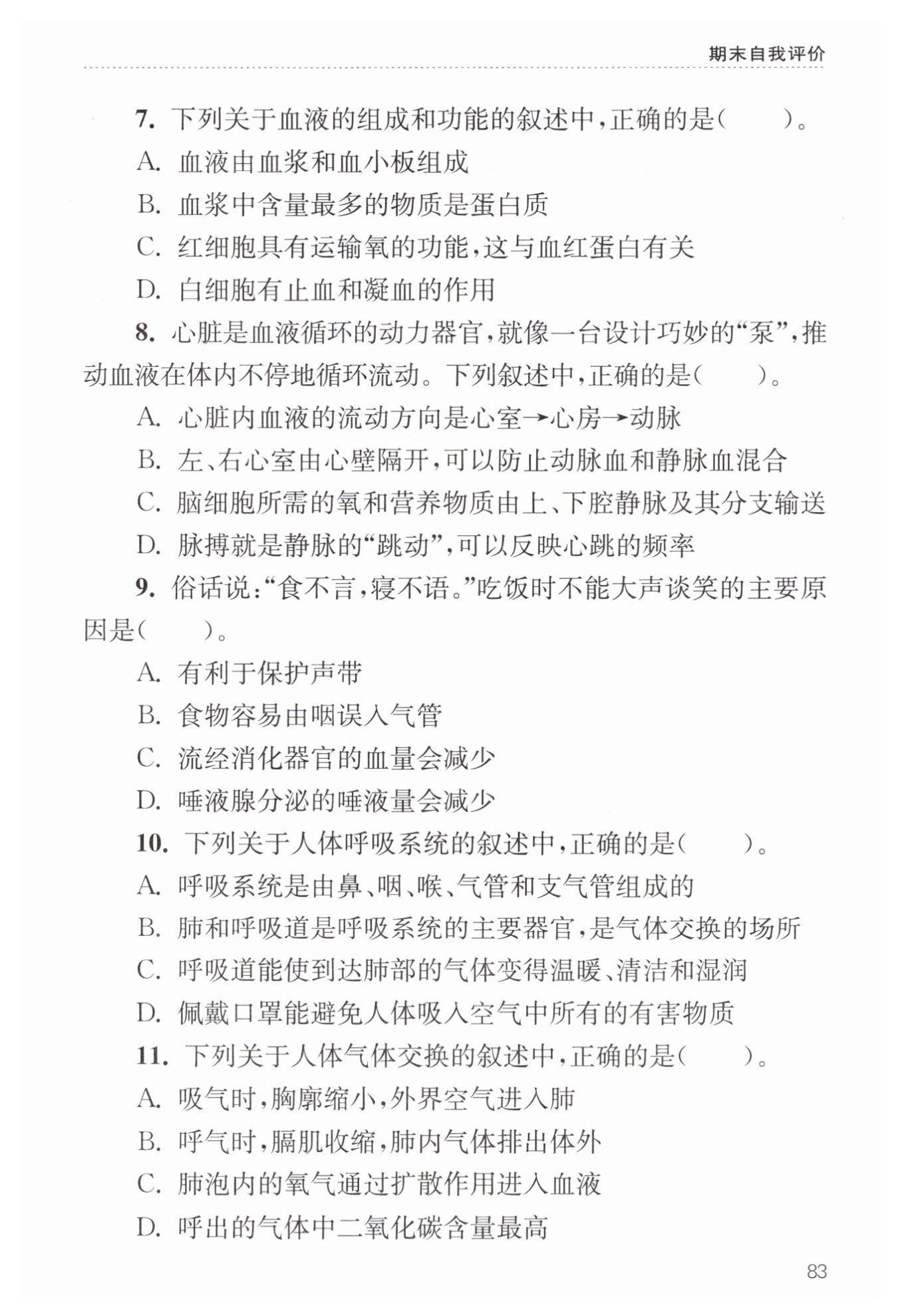 B選項(xiàng):血漿中含量最多的物質(zhì)是蛋白質(zhì)。這個(gè)選項(xiàng)也是錯(cuò)誤的,血漿中含量最多的物質(zhì)其實(shí)是水,而不是蛋白質(zhì)。