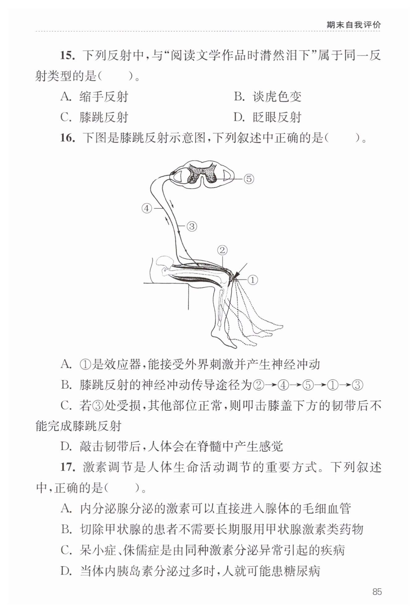 【解析】:本題主要考查膝跳反射的相關(guān)知識(shí),包括反射弧的結(jié)構(gòu)和功能。
