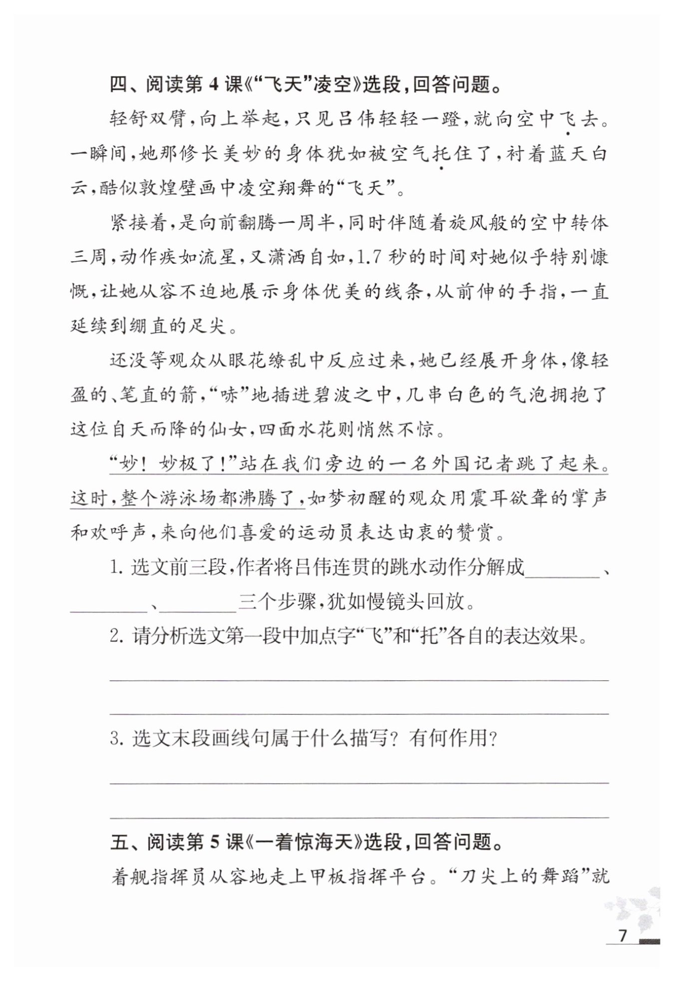 舒展,又照應(yīng)了下文有關(guān)跳水動作的內(nèi)容。 “托”字猶如把人定格在空中,從而更加表現(xiàn)出呂偉身材的修長、美妙、輕盈的特點(diǎn),為下文的精彩表現(xiàn)埋下伏筆。