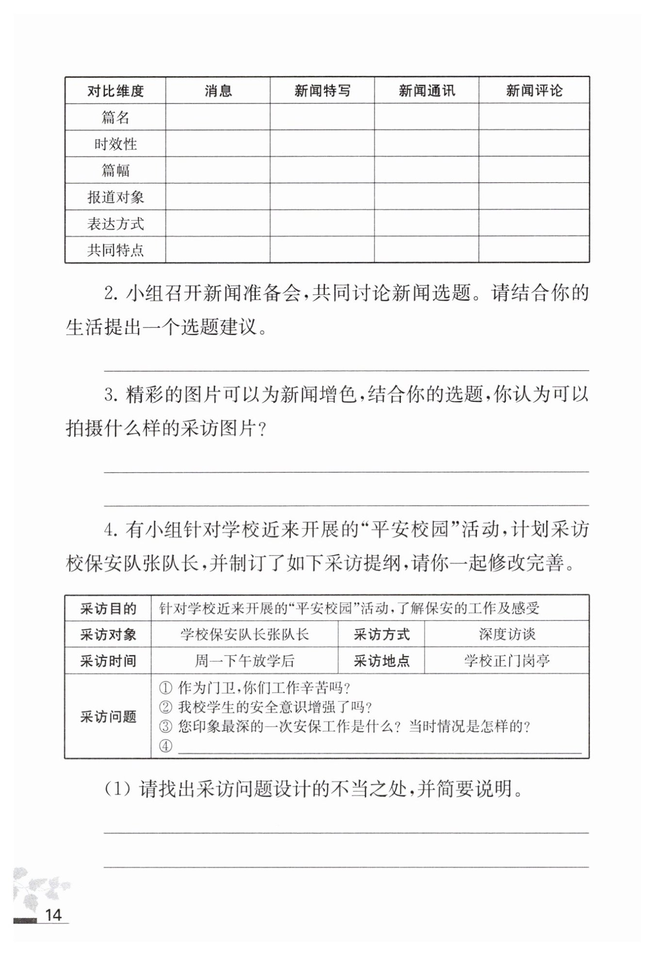 (1)問題①主觀性太強(qiáng),與采訪目的的關(guān)聯(lián)不夠緊密。問題②對(duì)象不明確,太空泛。