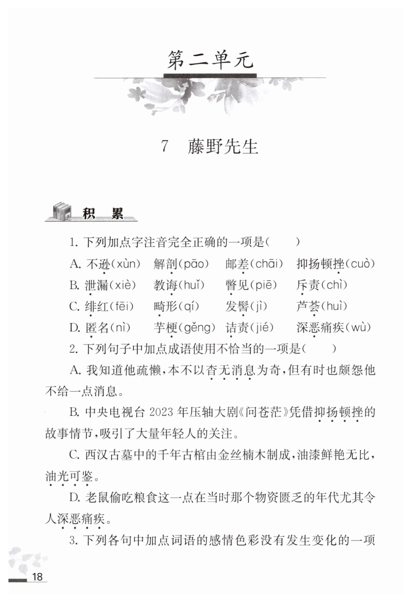 D(A. 解剖 pōu B. 教誨 huì C. 畸形 jī)