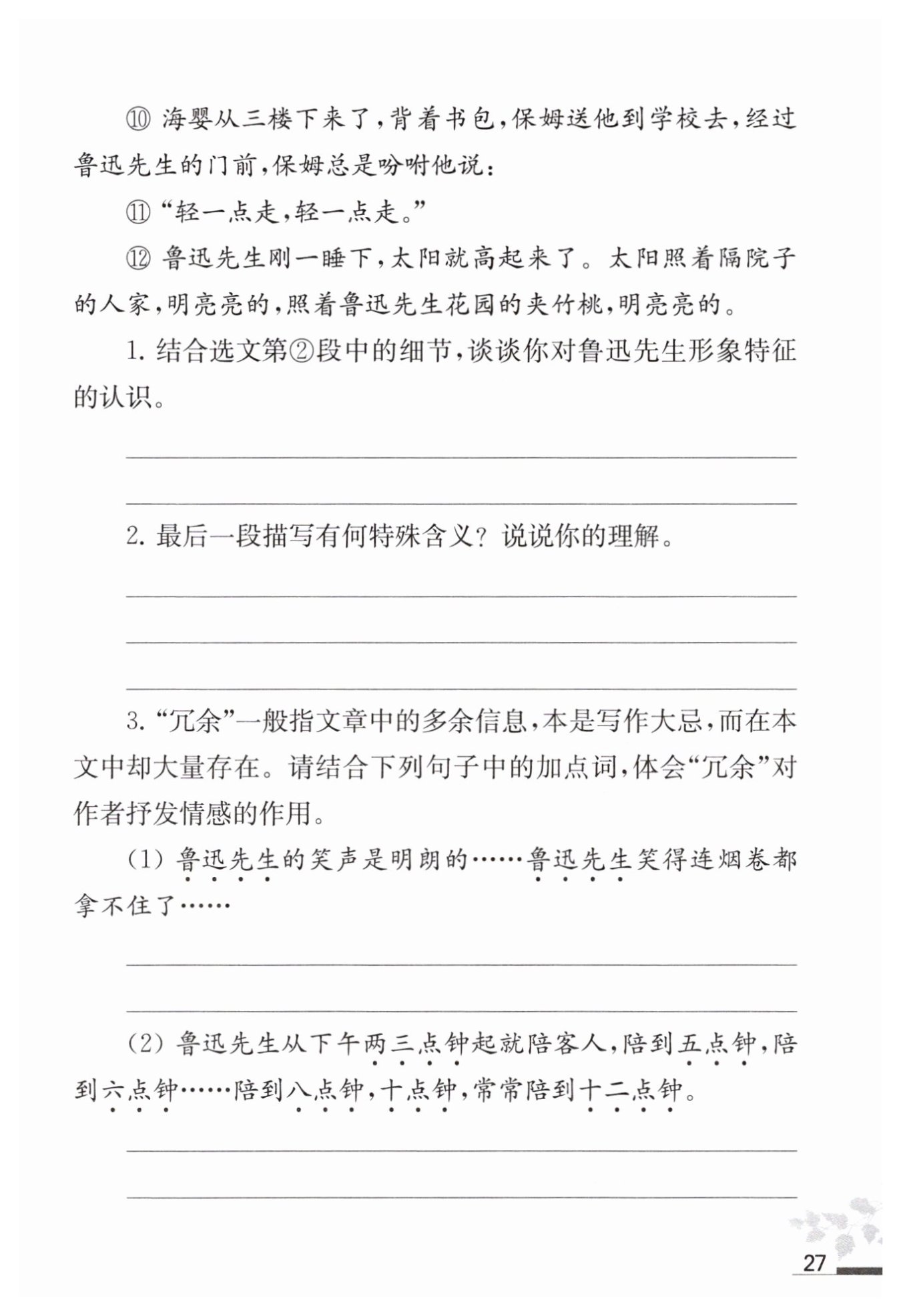最后一段是魯迅先生睡下后的環(huán)境描寫(xiě)。通過(guò)描寫(xiě)太陽(yáng)高照